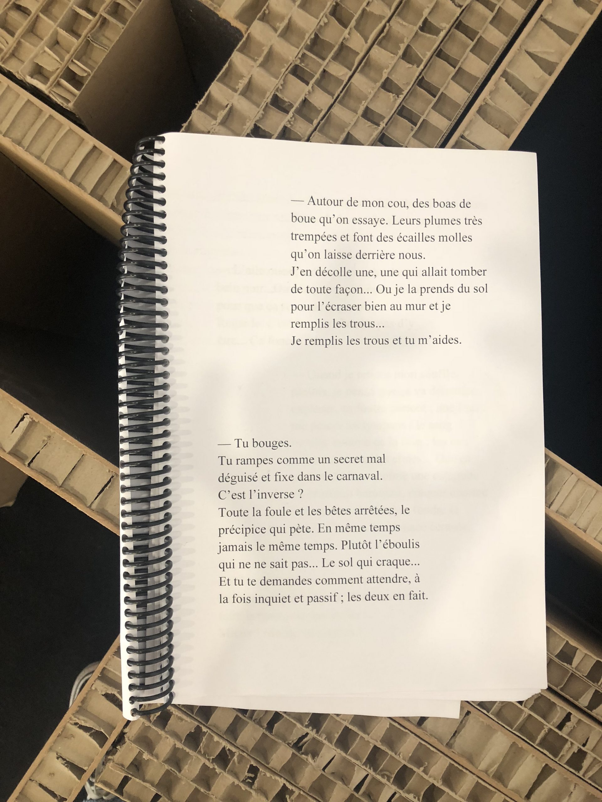L’idée est de déambuler parmi les éléments de l’installation, qui composent et décomposent l’espace sous toutes ses formes. « Je me rappelle, pendant mon enfance, mon loisir préféré était de déambuler, d’errer dans l’espace […] je créais des histoires […] ». Elle incite le visiteur à s’engager corporellement et à errer en s’appropriant l’espace scénique, pour en devenir l’acteur. Il découvre alors un parcours tour à tour historique, ludique et concret.