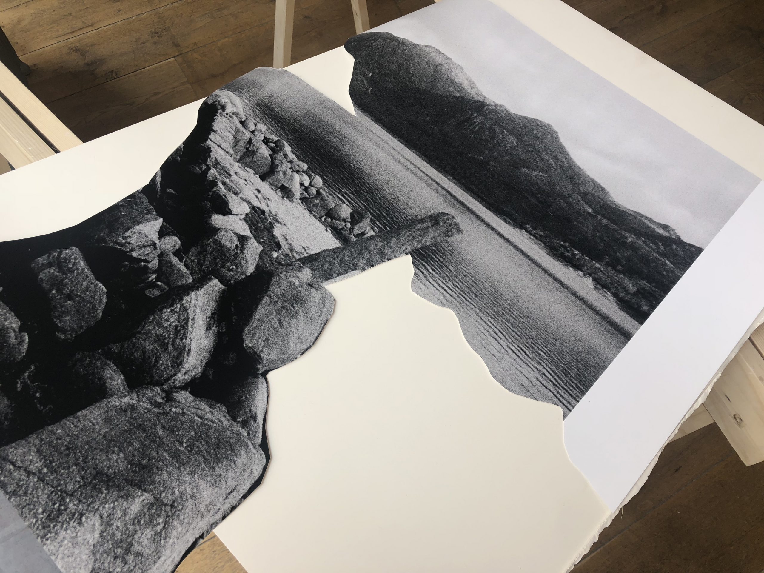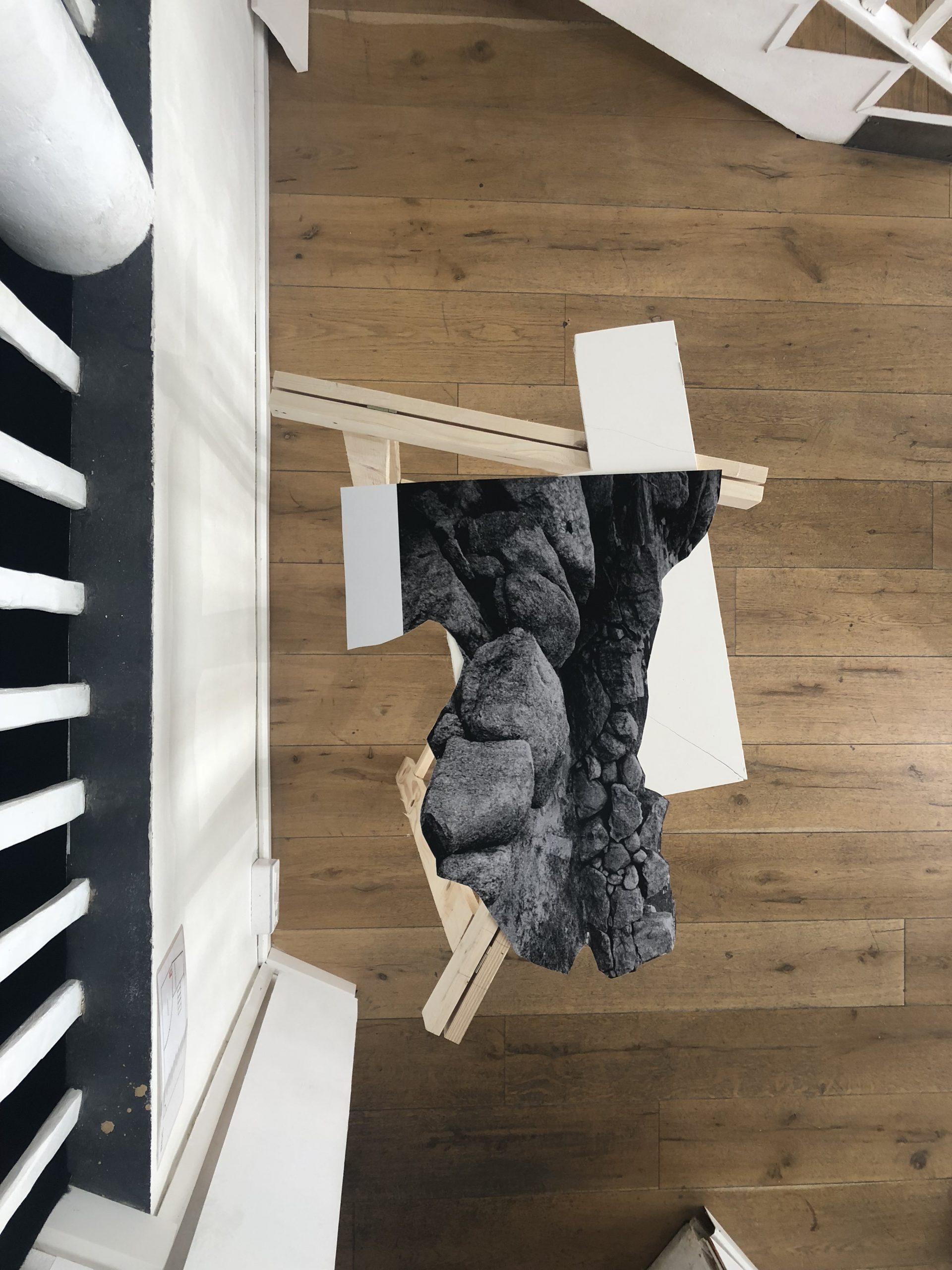 Après Montpellier, Tokyo ou encore Porto, Clara s’exprime donc aujourd’hui dans le 18ème, à Paris. « À moi de jouer » s’articule autour de trois univers distincts, où s’entremêlent des fragments d’une scénographie photographique, d’une archive vidéo et de la réplique d’une maquette. Jouant sur les parallèles et les jeux de miroirs, l’artiste nous plonge dans une décomposition de l’espace d’un lieu qui l’a particulièrement touché. Les ruines de Vilarinho da Furna, un petit village situé au nord du Portugal, submergé par la construction d’un réservoir qui a contraint les habitants à quitter les lieux. Laissant un site noyé, au sens premier du terme, mais aussi chargé d’émotions, qui submergent Clara, l’inspirent et la fascinent.