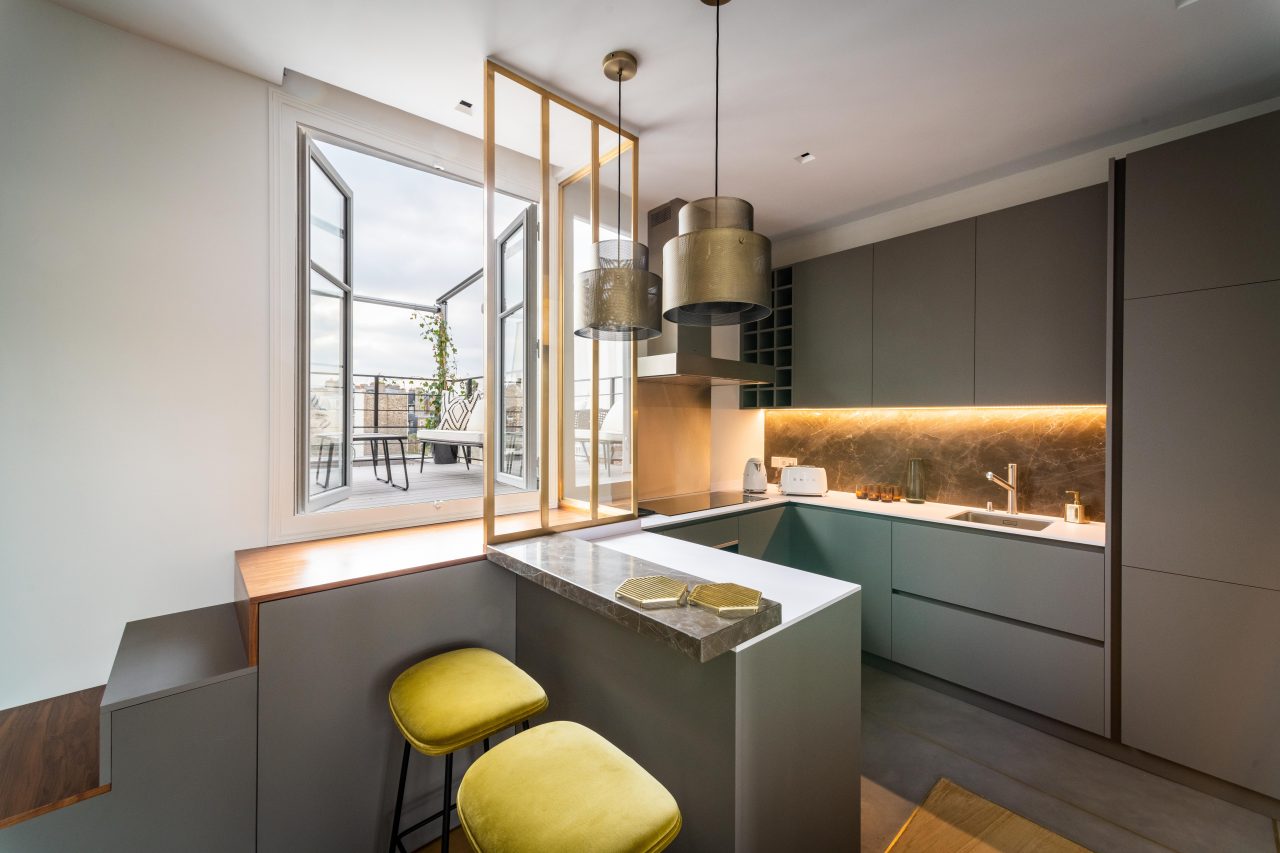 Il en aura fallu du travail et de la persévérance pour en arriver là. Alexandrine a d’abord évolué dans le monde du luxe, où elle s’est occupée du merchandising de grandes maisons de couture ; c’est là qu’elle apprend le sens du détail et de l’exigence. Il y a une dizaine d’années, elle entreprend de voler de ses propres ailes et commence à se former à l’architecture d’intérieur : « j’ai passé des nuits entière à apprendre, à m’exercer aux logiciels, tout en continuant à bosser en parallèle, quitte à faire des petits boulots qui n’avaient rien à voir ! Mais j’étais passionnée, et déterminée ». En guise de premier chantier, elle se voit confier l’aménagement d’un couloir « c’était un vrai défi ! Mais ça a marché ».