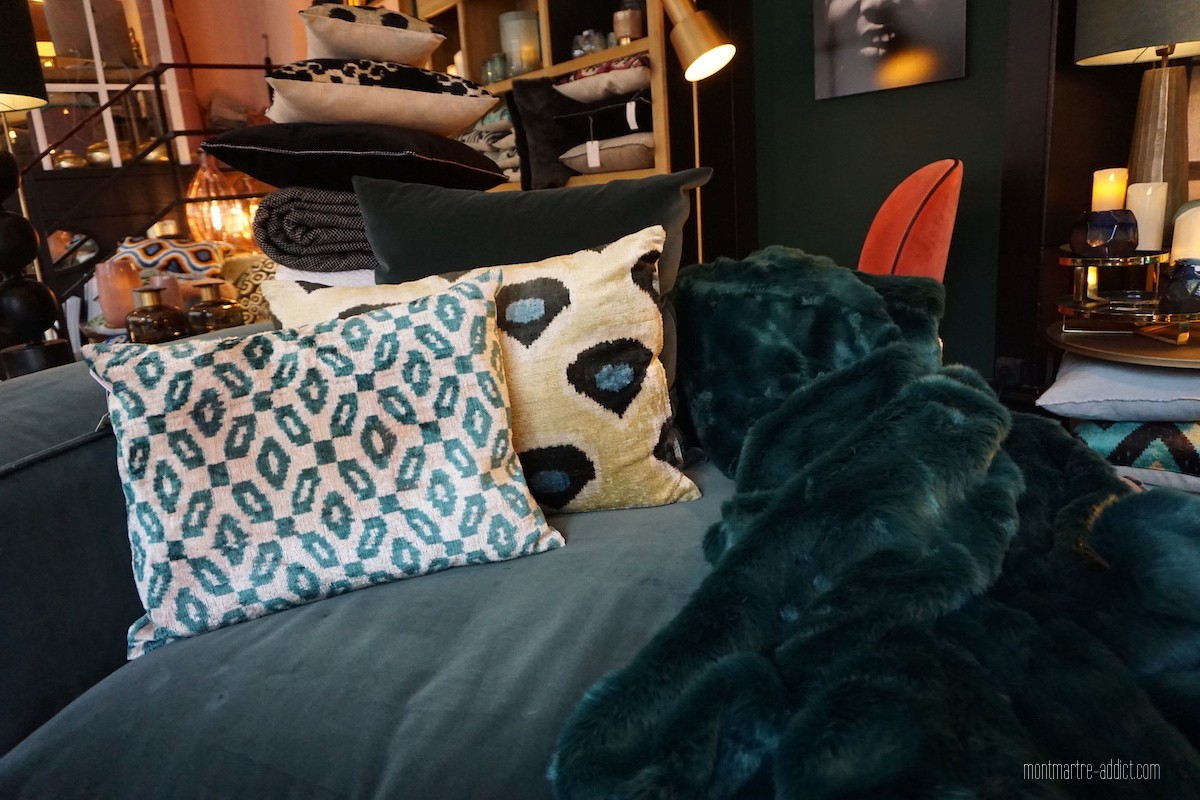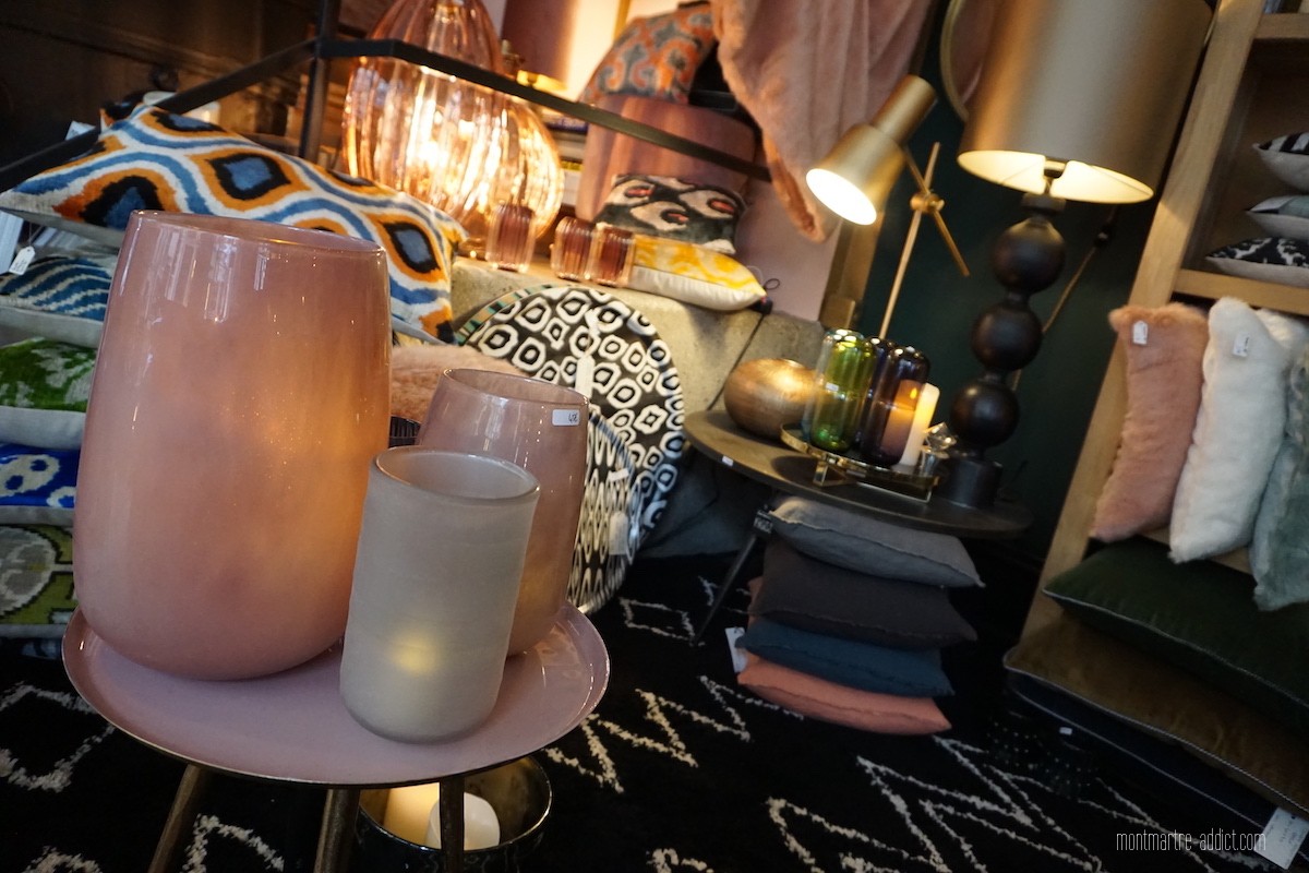 C’est aussi pour cette raison que depuis un an, le showroom est aussi devenu une boutique de décoration à part entière : « ce lieu a changé beaucoup de choses dans ma façon de travailler. Il m’a donné de l’assurance, mais surtout une énergie supplémentaire que je partage aujourd’hui avec les clients qui craquent sur les meubles et les objets que je présente ». Il faut dire qu’en plus d’avoir de la personnalité, Alexandrine a beaucoup de goût ! Elle travaille principalement avec trois belles marques : BOLIA et GUBI pour les meubles, chaises et canapés, et HARMONY pour les textiles. Pour le reste, elle sélectionne bibelots, lampes, bougies, photophores et autres tapis au coup de cœur, et on adore !