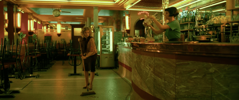 « Un jour je vais boire un coup au Café des Deux Moulins. Je demande à la serveuse qui joue d’ailleurs un petit rôle dans le film, si l’endroit a déjà servi de décor au cinéma. Elle me dit oui, mais plus jamais ça ! ». Jeunet arrive finalement à convaincre les patrons, il garde le côté années 50 du bistro mais ajoute plein de petites choses. En effet, chaque plan est factice, retravaillé entièrement à la palette graphique. Le tournage durera dix-neuf semaines, dont treize en extérieur.