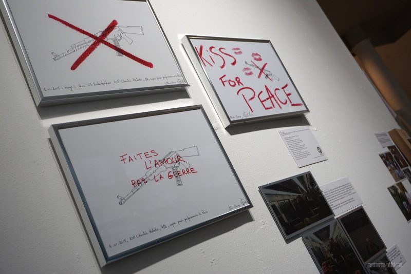 Par ailleurs, deux à trois expositions sont organisées chaque année, accompagnées d’événements. On peut ainsi en ce moment et jusqu’au 28 janvier découvrir l’exposition Miroirs d’Ombres #2. Au départ pensée comme une restitution des œuvres créées dans le cadre de la série de rendez-vous organisée chaque année depuis 2007 dans les squares, jardins, parcs et places publiques des 13e et 18e arrondissements, les artistes ont finalement été invités à créer de nouvelles œuvres, dont certaines s’inscrivent clairement dans un mouvement d’art militant.
