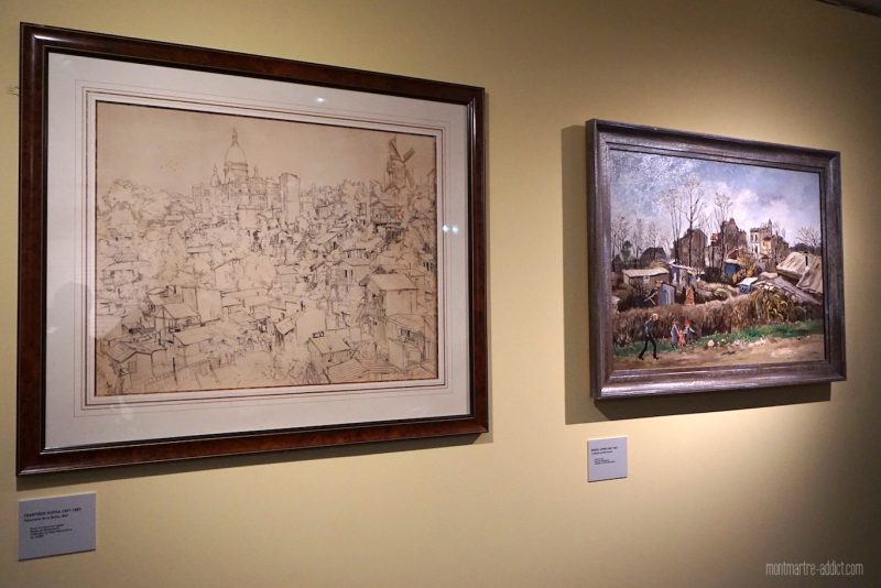 Tout commence après 1870, alors que Montmartre n’est rattaché à Paris que depuis 10 ans. Les bas loyers pratiqués dans ce quartier presque encore à la campagne attirent beaucoup d’artistes, parmi lesquels de nombreux immigrés ; c’est ce mélange de cultures qui forgera aussi la légende la Butte et qui en fait déjà toute sa richesse. Le parcours de l’exposition, qui rassemble près de 150 oeuvres (peintures, dessins, gravures et photographies), propose de passer d’atelier en atelier, montrant une nouvelle fois la densité de talents concentrée sur un périmètre aussi restreint que celui de la Butte Montmartre. Treize sections portent ainsi les noms de ces lieux mythiques, pour certains disparus, pour d’autres encore visibles aujourd’hui.