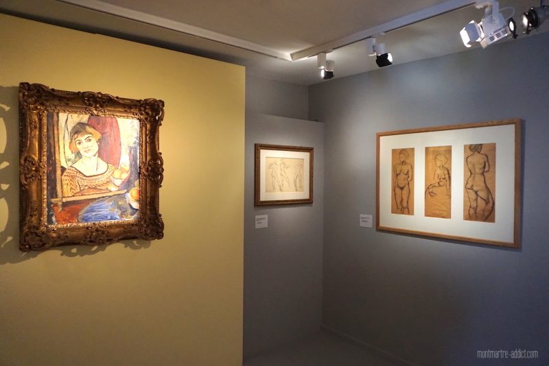 Le 12 rue Cortot évoque, entre autre, Renoir, qui y aménage son atelier en 1876, d’où il déplace chaque jour sa toile pour peindre Le Bal du Moulin de la Galette voisin. D’autres artistes, moins connus du grand public, y ont également vécu ou travaillé, parmi lesquels Emile Bernard ou encore Démétrius Galanis, peintre d’origine grecque qui occupa l’aile gauche du bâtiment de 1910 à 1965. Plus loin dans le parcours, après un passage par l’Atelier de Suzanne Valadon, on retrouve le trop infernal Valadon, Utrillon et Utter, auquel le Musée de Montmartre avait consacré une exposition complète en 2015, ainsi que plusieurs toiles de Suzanne pour clore l’exposition. Et ne manquez surtout pas la petite toile signée Utrillo représentant le Bureau de Poste des Abbesses !