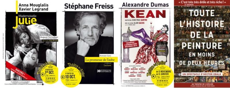 A partir du 10 octobre, Stéphane Freiss sera à son tour sur scène pour une lecture du chef d’œuvre de Romain Gary La promesse de l’aube, puis en novembre, on pourra découvrir Kean d’Alexandre Dumas dans une mise en scène d’Alain Sachs. En octobre, le critique d’art Hector Obalk proposera également une fois par semaine une Histoire de la peinture en moins de deux heures, stand up pédagogique, spectaculaire et musical sur l’histoire de la peinture.