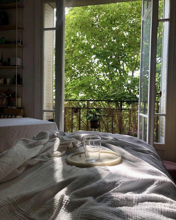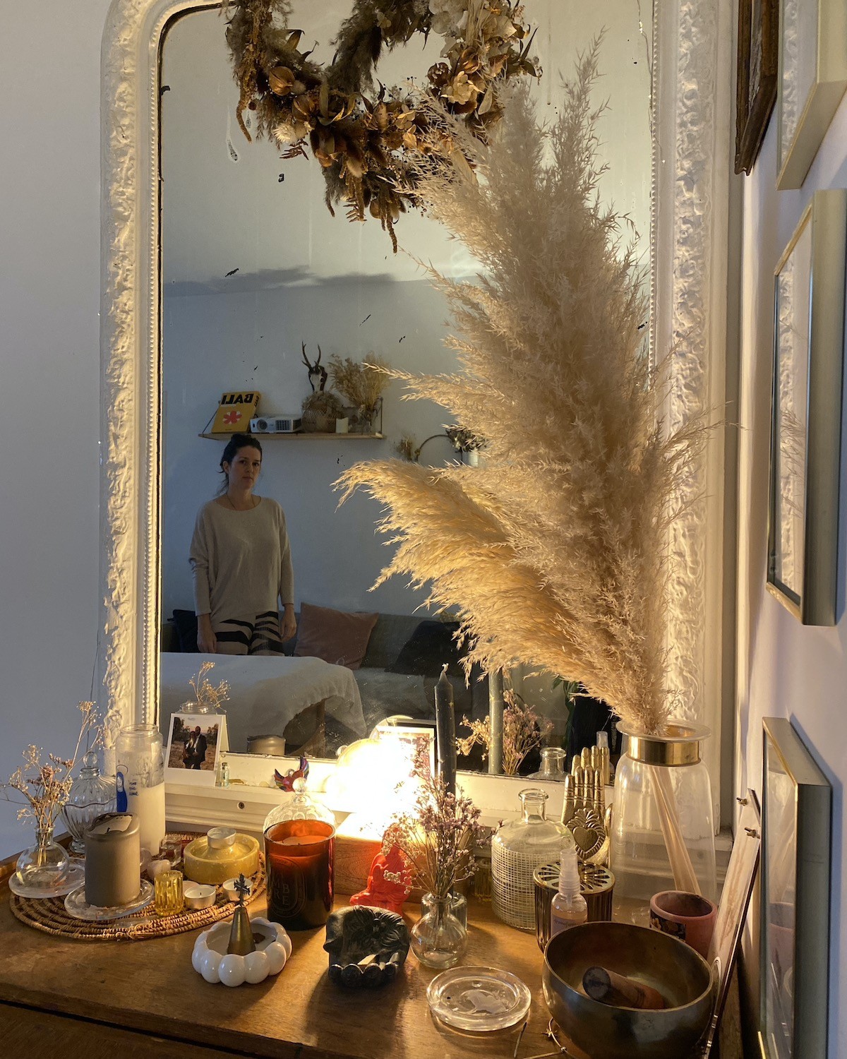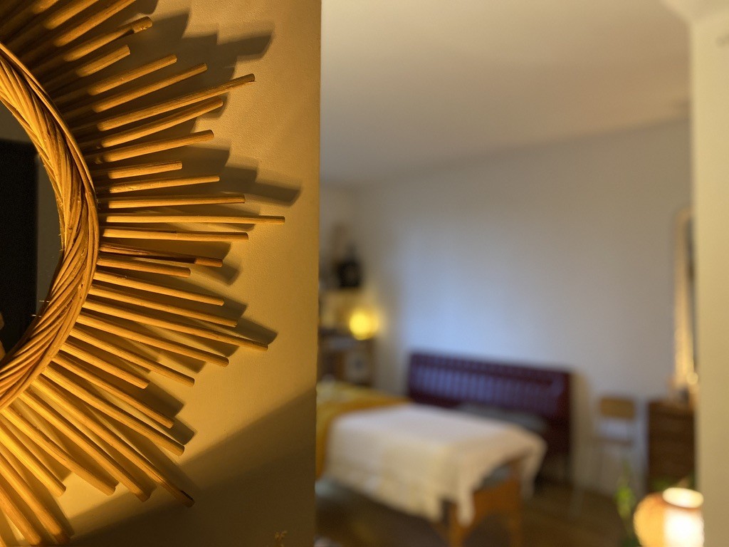 Quand on arrive chez Bene Tibi, on est instinctivement attiré par les larges portes-fenêtres qui donnent sur deux immenses chênes, dont le bruissement des feuilles vous accompagne pendant toute la durée du soin. Le lieu diffuse de très bonnes ondes, et a d’ailleurs vocation à soigner depuis longtemps. En effet, aussi incroyable que cela puisse paraître, cet appartement n’était autre que le cabinet de son grand-père, médecin généraliste du quartier. À son départ à la retraite, elle décide de le racheter pour y vivre et l’appartement reprend sa fonction initiale : accueillir des gens et leur faire du bien.