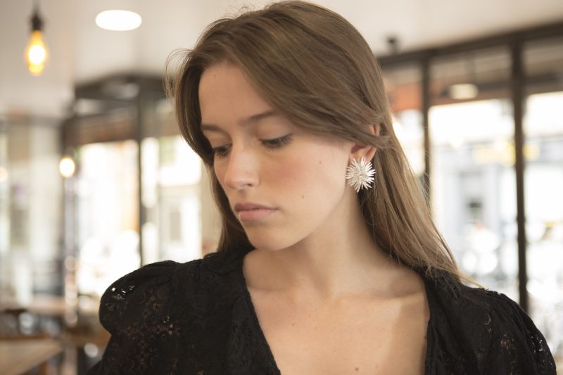 Il faut dire que ses créations sont sublimes, véritables bijoux de peau tout en finesse et légèreté. La créatrice n’aime pas les choses rigides, elle préfère les bijoux qui bougent, et qui savent se montrer discrets tout en étant bien présents. C’est pour cette raison qu’elle ne travaille que les belles matières, plaqué or, vermeil, or, pierres précieuses et semi-précieuses en perles fines, et qu’elle adore les plumes naturelles, découpées et peintes à la main. Le résultat ? Des collections raffinées et élégantes renouvelées deux fois dans l’année, et qui séduisent un public de plus en plus large au fil des années.
