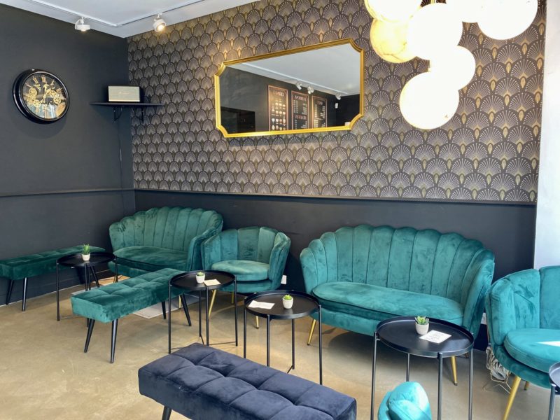 Quelle que soit l’heure de la journée, on pousse la porte avec plaisir, et on est accueilli avec le sourire ! On se laisse bercer par le sifflement de la machine en prenant le temps de lire, de checker ses e-mails ou de se retrouver entre amis. Le cadre a été pensé pour se la jouer cosy et rétro : papier-peint Art Déco aux murs, canapés de velours vert et playlist qui enchaîne des titres plus jazzy les uns que les autres en font une véritable échappatoire à la surchauffe « métro-boulot-dodo », qualifiée de « third place » par le maître des lieux.