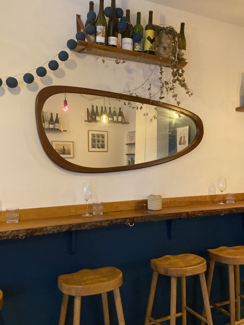 C’est d’ailleurs Marie qui est à l’origine de ce beau projet. Sommelière de formation, elle travaille quatre ans Aux Vins Vivants avant de proposer à Arthur, le fondateur, de s’associer pour créer l’adresse de la rue Marcadet. Ouvert en mai 2021, le lieu est séparé en deux : la cave, qui ressemble un peu à une bibliothèque, où l’on trouve plus de 1000 références de vins mais aussi de spiritueux, bières et champagnes, et le côté « resto » où l’on se pose pour déguster et manger. Toutes les références de vins ne sont pas toujours disponibles, l’idée étant de travailler avec des petits producteurs qui fournissent donc de petites quantités de bouteilles ; mais c’est aussi ce qui permet de faire continuellement de belles découvertes.