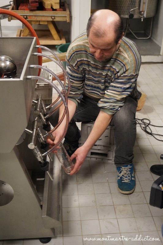 Le pari était osé (et pas du goût de tous…) mais on sait aujourd'hui qu'il est plus que réussi. Mercredi dernier avait en effet lieu la mise en bouteilles de cette Cuvée des Poètes au caveau de la Mairie du 18ème, en présence de monsieur le Maire Daniel Vaillant et de Brigitte Houdinière, présidente du COFAS (Comité des Fêtes de d'Actions Sociales du 18ème), au profit duquel sont vendues chaque année les bouteilles de Clos Montmartre.