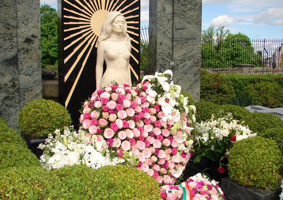 C’est désormais au Cimetière de Montmartre que repose Dalida, plus exactement dans la 18e division. Sur sa tombe, on peut admirer une autre statue réalisée par Aslan, représentant la chanteuse en pied auréolée d’un soleil. Trente ans après sa disparition, sa sépulture reste encore l’une des plus fleuries de France, témoignant de l’incroyable popularité de l’artiste.