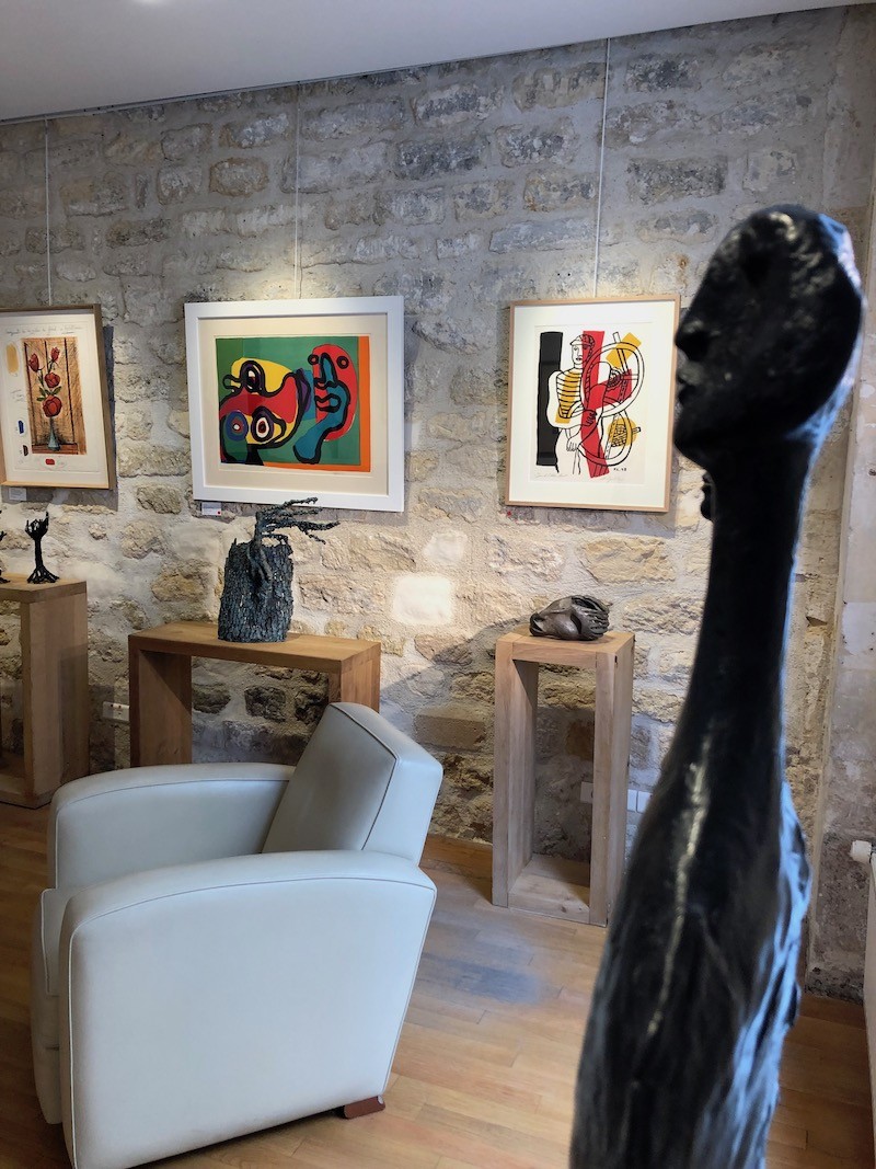 C’est justement parce qu’il n’appréciait pas trop le fonctionnement des galeries « classiques » que Jacques a eu envie d’ouvrir la sienne. A l’origine, l’Atelier Véron était ainsi un lieu principalement consacré à la sculpture, et les premiers artistes exposés, en plus d’être sculpteurs, étaient surtout des amis de Jacques. Progressivement, le champ s’est élargi, notamment avec l’arrivée d’Aurélie en septembre 2018. En avril 2019, elle organise durant trois semaines une première exposition de lithographies de l’imprimerie Mourlot, prélude à l’exposition actuellement présentée jusqu’au 15 octobre.