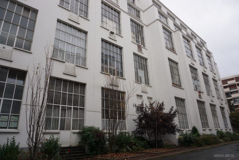 C’est pour lutter contre les opérations immobilières de l’après-guerre qui chassent les artistes de la Butte que Jean Varenne, conseiller de Paris du quartier des Grandes Carrières, propose au Conseil Municipal de Paris de voter l’attribution d’un terrain du maquis de la rue Ordener pour y faire construire une cité d’artistes, qui leur permettrait de se loger à prix modeste et de travailler. Le projet, confié à l’architecte Adolphe Thiers (à qui l’on doit entre autre plusieurs hôtels particuliers de l’avenue Junot), est d’abord pensé comme un phalanstère, où en plus des ateliers-logements, on trouverait une bibliothèque, une coopérative, une salle d’attente et une salle de conférence/exposition. Les difficultés économiques rencontrées par la société d’habitations à bon marché de Montmartre empêcheront l’aboutissement du projet initial, et seul le premier bâtiment sur rue s’en rapproche. Les premiers locataires qui s’installent en 1932 trouvent ainsi les lieux bruts et les aménagent à leur guise, ce qui explique que les ateliers soient aujourd’hui tous différents.