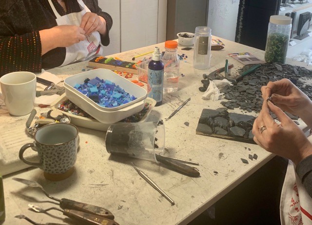 Progressivement, Véronique a souhaité transmettre sa passion au travers d’ateliers, mais c’est sa rencontre avec l’équipe de wecandoo qui lui a permis de structurer et développer son offre. Aujourd’hui, elle anime trois types d’ateliers (découverte, miroir ou totem) et les apprentis mosaïstes sont de plus en plus nombreux à venir s’initier à la pratique.