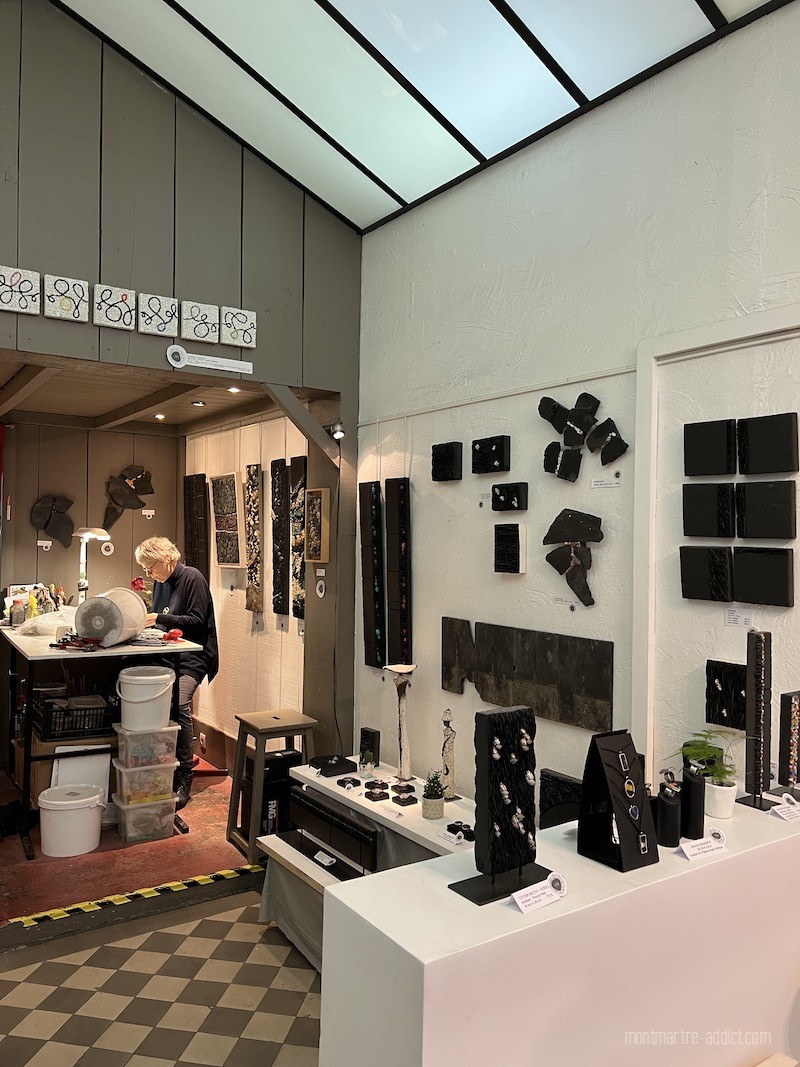 Après une première exposition réussie en 2009, elle se met à rêver d’un atelier à Montmartre, son quartier depuis de nombreuses années. Quand Véronique découvre le 45 de la rue Lepic, elle tombe sous le charme, et on la comprend. L’espace est grand et lumineux grâce à sa belle verrière, et puis il fait partie de ces ateliers qui ont accès au fameux passage couvert juste derrière ; mais on ne dira rien, car beaucoup souhaitent que cet endroit reste secret, alors on les respecte… Toujours est-il qu’en 2012, Véronique réalise son rêve et y installe son atelier, où elle peut à la fois travailler et exposer ses œuvres.