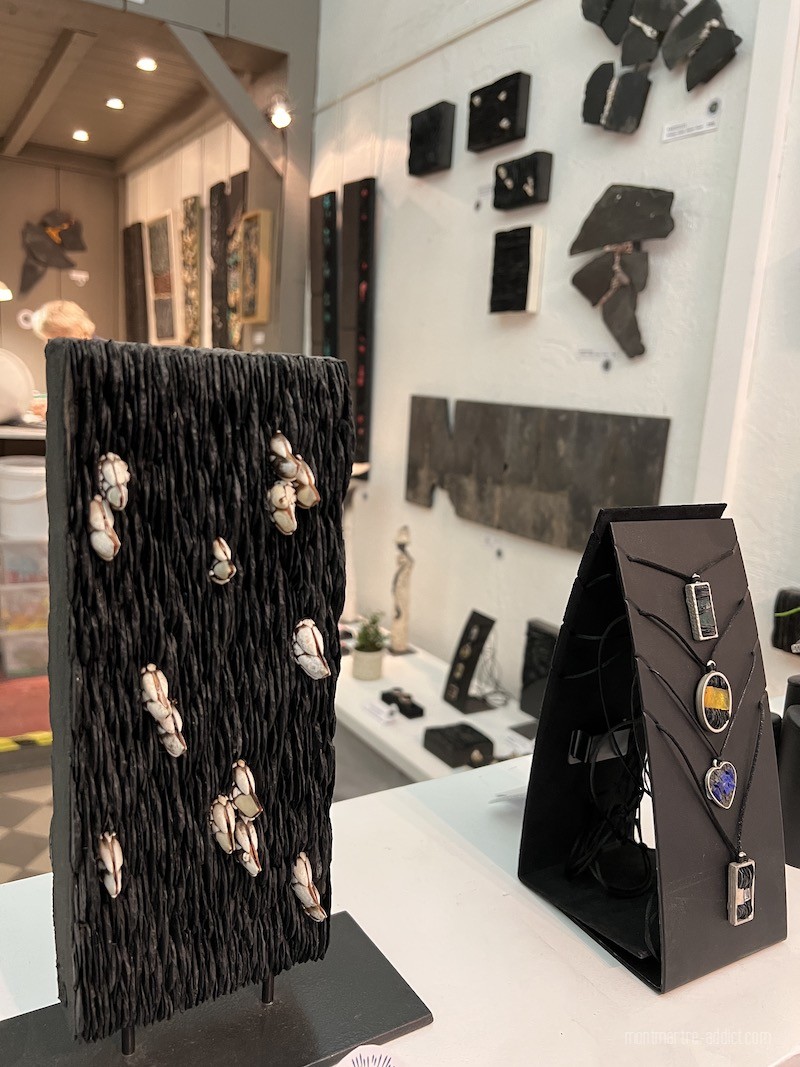 Et c’est rare pour un artisan d’avoir pignon sur rue. C’est pourquoi il ne faut pas hésiter à rentrer, non seulement parce que les créations de Véronique sont vraiment originales, mais en plus parce qu’on peut la voir travailler, et découvrir à quel point la mosaïque nécessite patience et précision. Mais il n’y a pas qu’à Montmartre qu’on peut voir son travail. En tant que membre des Ateliers d’Art de France, Véronique participe régulièrement à des expositions ou des salons, notamment Maison & Objet, qui lui a permis, entre autre, de s’ouvrir à l’international. L’un de ses miroirs est par exemple actuellement vendu dans une boutique de déco à New-York (excusez du peu !), tandis que d’autres créations sont également présentées dans des galeries parisiennes.