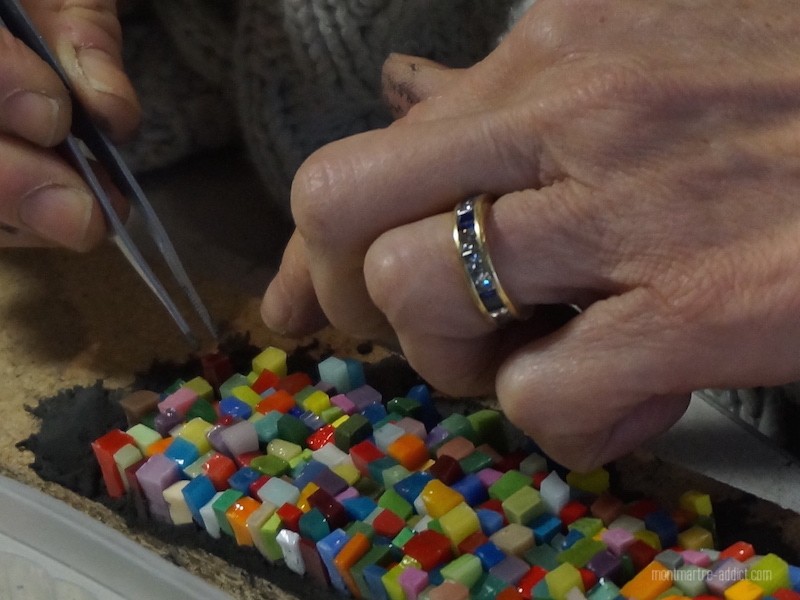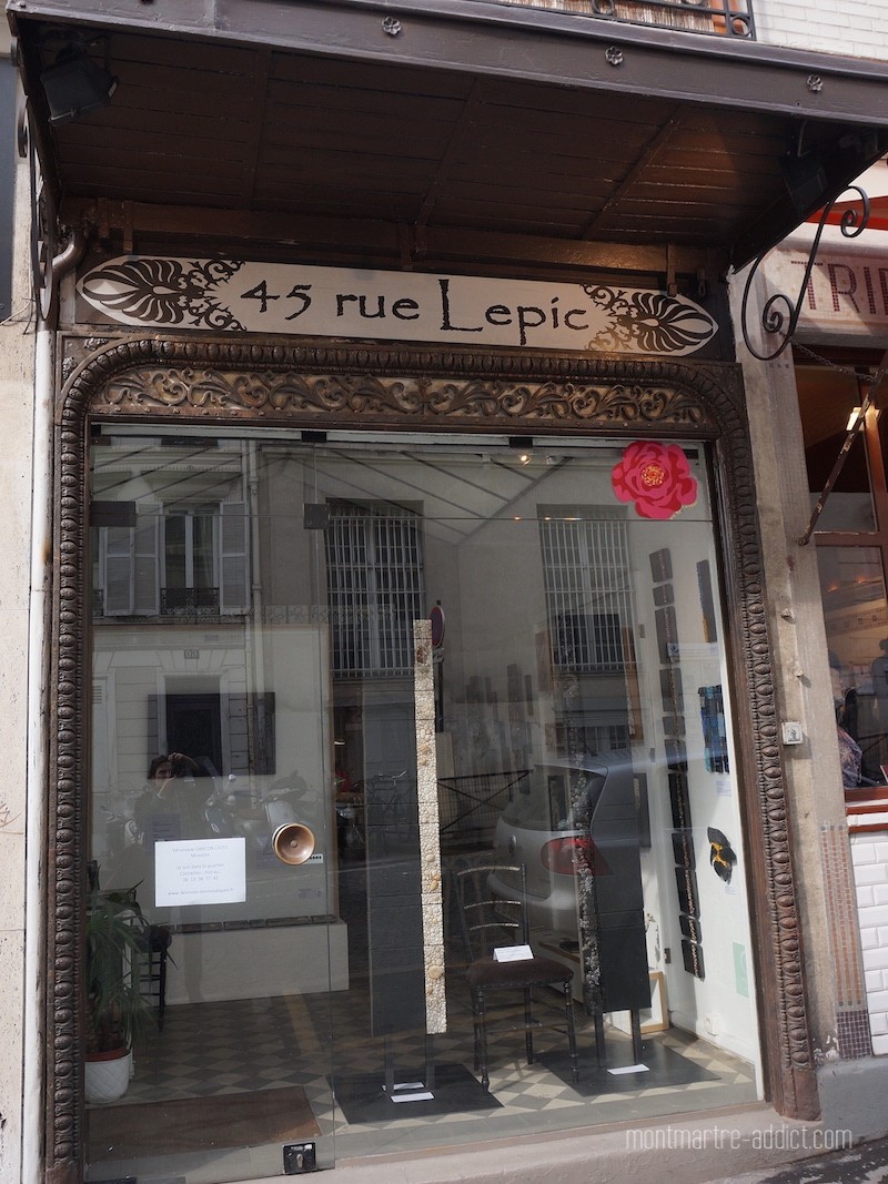 Si le numéro 45 reste incontestablement l’une des plus jolies devantures de la rue Lepic, l’adresse abrite surtout le très bel atelier de mosaïques de Véronique ; un lieu de création où elle expose son travail et où elle initie les amateurs à l’art de la mosaïque, qui fête cette année ses 10 ans !