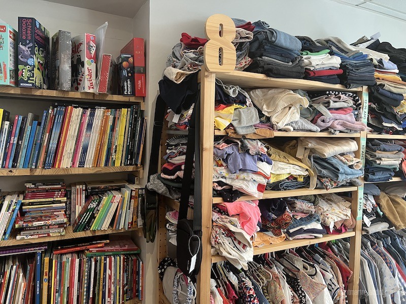 Certaines familles achètent, d’autres revendent (en 9 ans, Stéphanie a accueilli plus de 1500 familles de déposants !), certaines font les deux, utilisent leur cagnotte pour refaire le vestiaire de leurs enfants, et sont récompensées pour leur fidélité puisqu’elles reçoivent 15€ de crédit au bout de 10 achats. Et durant l’été, certains articles sont même proposés en promo.