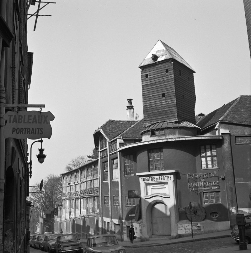 Initialement situé au 81 rue Lepic, à l’angle des rues Lepic et Girardon, il a d’abord porté le nom de Théâtre du Tertre. Inauguré le 13 décembre 1954, dans une construction attenante au Moulin de la Galette et autrefois dénommé « Sur les Toits de Paris, le cabaret du vieux Montmartre », le théâtre était dirigé par l’écrivain Georges Charaire et le metteur en scène Pierre Sonnier. Le choix du lieu ne s’est sans doute pas fait par hasard pour Charaire, ami proche de la famille Casadesus, de Gen Paul ou encore de Marcel Aymé, qui habitaient à deux pas. Eugène Ionesco y débute, et le théâtre deviendra l’un des principaux théâtres d’essai de la capitale.