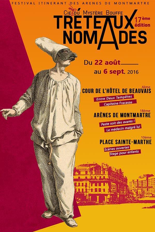 Depuis 1998, les arènes de Montmartre accueillent à la fin de l’été le Festival Tréteaux Nomades. Réunissant théâtre de tréteaux, commedia dell’arte, théâtre burlesque, musical, poétique et spectacle forain, le Festival Tréteaux Nomades investit des lieux insolites pour le bonheur des grands et des petits. Les compagnies invitées sont spécialisées depuis de nombreuses années dans ces formes théâtrales. Leurs spectacles prennent en compte la diversité culturelle, ethnique et sociale d’un public varié, parisien, francilien et touristes de passage. Tous les spectacles proposés nous offrent une vision contemporaine de textes anciens et toujours actuels, qui traitent de phénomènes de société par leurs engagements artistiques et civiques.