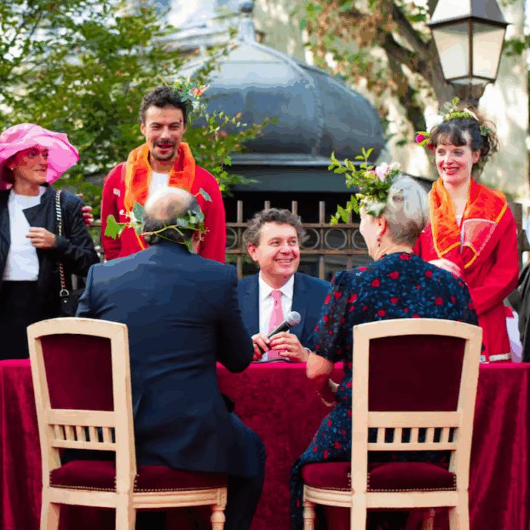Si vous avez toujours rêvé de vous marier pour de faux alors c’est le moment! Les non-mariés célèbrent leur amour lors d’une cérémonie menée par Éric Lejoindre, maire du 18e arrondissement.