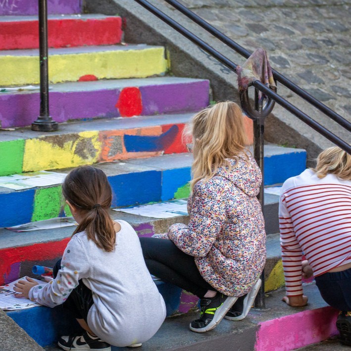 Les élèves des écoles du 18e, guidés par leurs professeurs d’arts plastiques, transforment les escaliers du Sacré-Cœur en une galerie à ciel ouvert, célébrant la jeunesse et l’avenir a travers des œuvres colorées et pleines de vie.