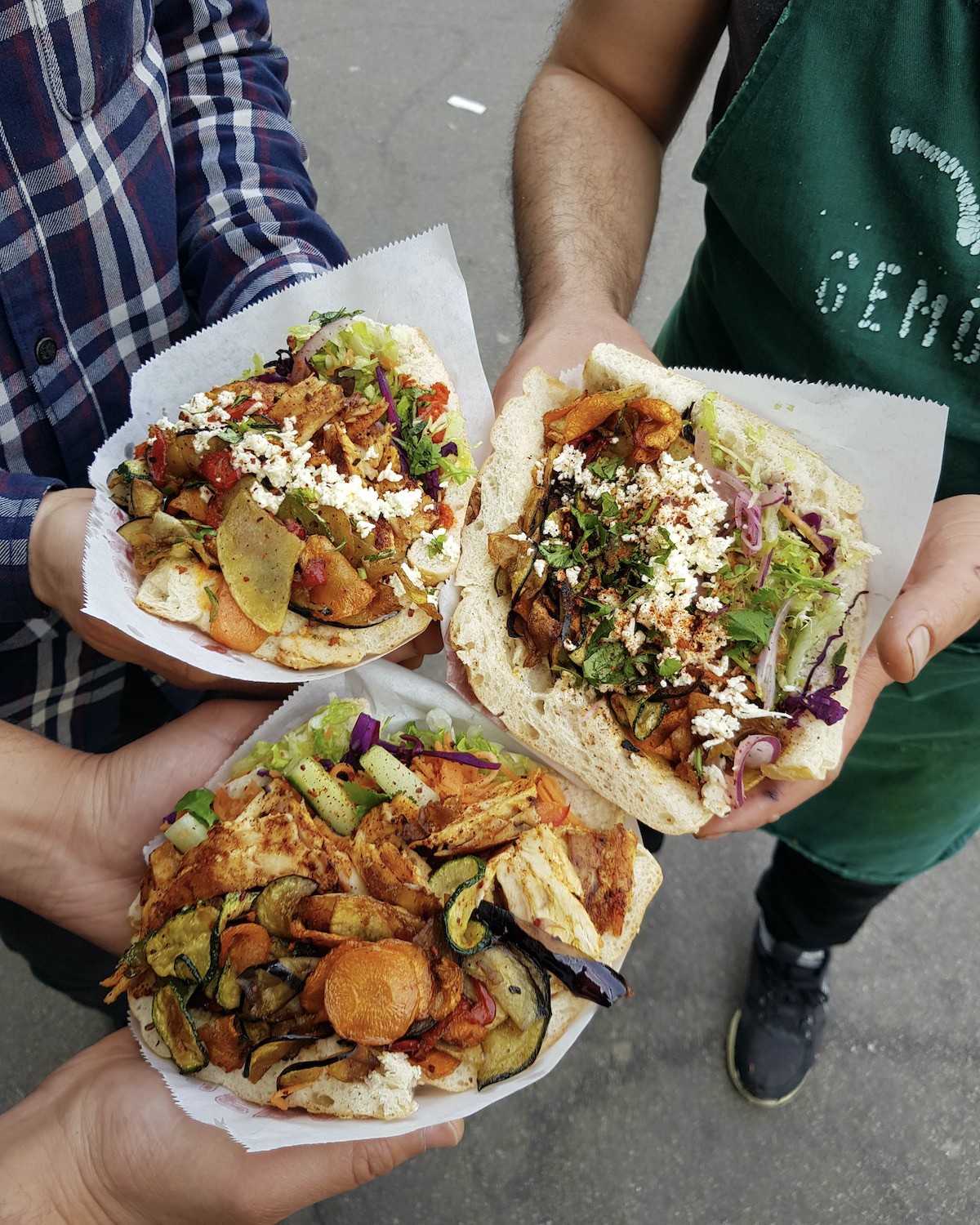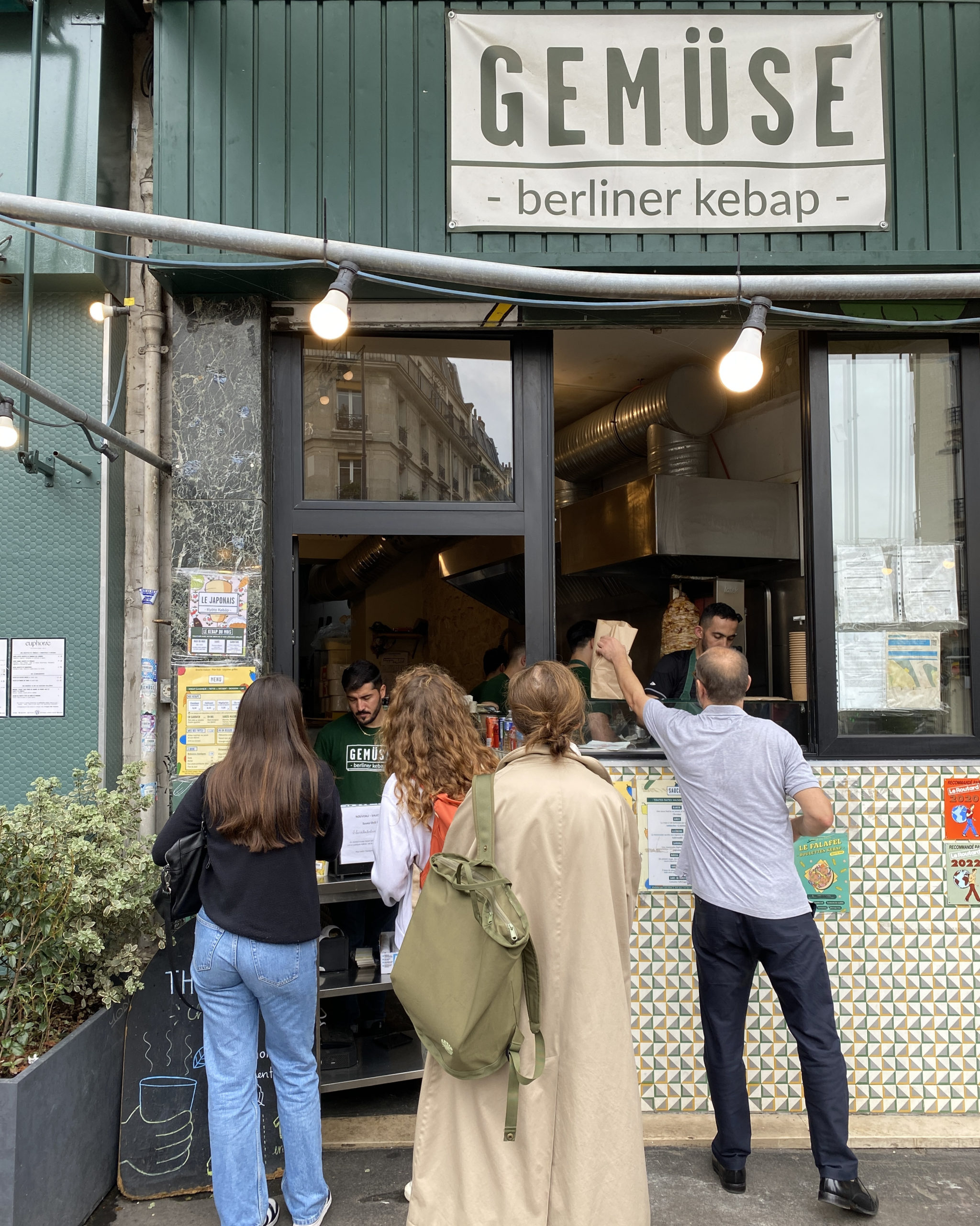 Noé se concentre pour l’instant sur sa seule adresse made in 18e et sur son équipe de compétition. Tous sont formés à être à plusieurs postes à la fois, pour que chacun puisse avoir un contact avec la clientèle. Parmi les fidèles, on peut citer Fahim qui était là le premier jour de l’ouverture, et qu’on peut toujours voir derrière la caisse ou en cuisine. Mais aussi Mustafa, Subash, Amir, Mukhtar, Saci, Shafiq, Salam, Yassine, Nasser, Yohan et Faysal. Une team qui ne cesse de grandir, à l’image de l’affluence du lieu qui, elle, ne faiblit pas. Pari réussi : le midi comme le soir, la file d’attente est autant constituée de personnes âgées que de plus jeunes, de gars du quartier, de ceux qui viennent de plus loin, de ceux qui ont l’habitude du kebab classique ou de ceux qui ne mangent jamais de street-food. Chez Gemüse, il n’y a aucune livraison, l’attente fait partie du plaisir. La seule manière d’accéder au sésame c’est de se faire servir au comptoir. Pour ceux qui n’ont encore jamais testé, on vous rassure sur deux points : malgré son succès le spot prend très à coeur son engagement de restauration dite “rapide” et on ne patiente généralement jamais plus de 10 minutes pour repartir avec son sandwich. Quant aux adeptes du classique sauce blanche-tomates-oignons, vous ne serez pas pour autant refoulés à la caisse ; quelque soit votre politique vous avez le droit de vous faire entendre !