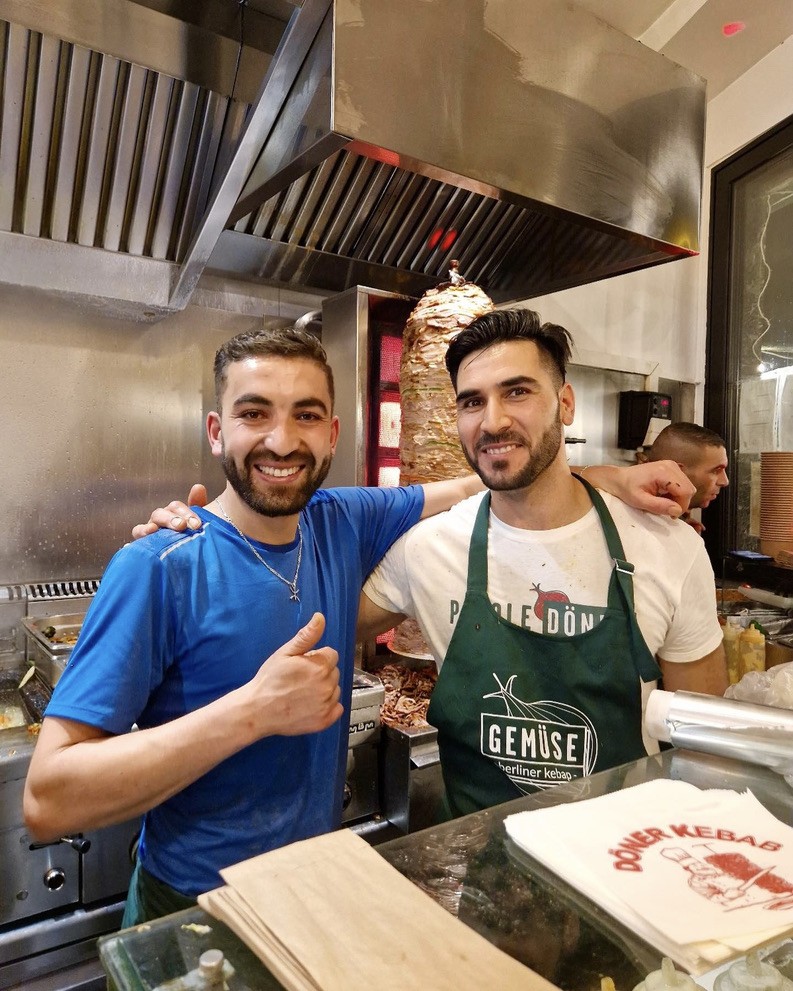 Mais qu’est-ce qu’un “Berliner Kebab” exactement ? Tenez-vous bien : il n’existe pas d’équivalent à Berlin. Noé l’a appelé comme ça parce qu’il s’est inspiré de l’iconique “döner” berlinois, mais le but était de créer le sandwich de ses rêves : celui qui lui manquait à lui, en tant que client à Paris. Il est parti du bon vieux grec qu’on trouve à tous les coins de rues, des cultures culinaires turques et allemandes mais aussi du traditionnel falafel israélien et du sabir irakien. Sa volonté était de démontrer qu’un kebab pouvait être cuisiné et que ça n’était pas (que) de l’assemblage.