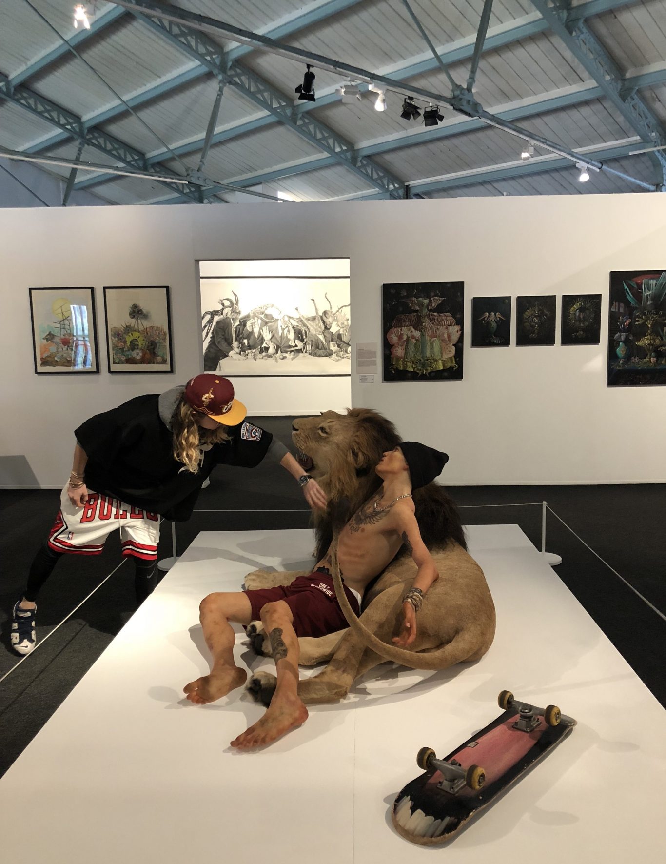 La sélection des artistes est surprenante et nous immerge au sein d’une scène artistique tout ce qu’il y a de plus alternatif, loin des préoccupations mercantiles contemporaines. Honneur à la figuration, sous toutes ses formes : photographies, sculptures, dessins, peintures, collages, mosaïques. Grande première pour la plupart des artistes présents, chacun investit son espace d’expression avec audace, affirmant des univers très spécifiques et stimulant l’imaginaire des visiteurs.