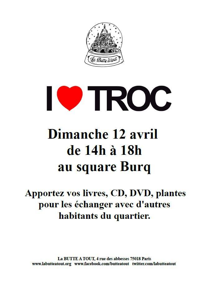 La Butte A Tout organise le dimanche 12 avril de 14h à 18h au Square Burq un troc culturel de livres, CD, DVD et de plantes.