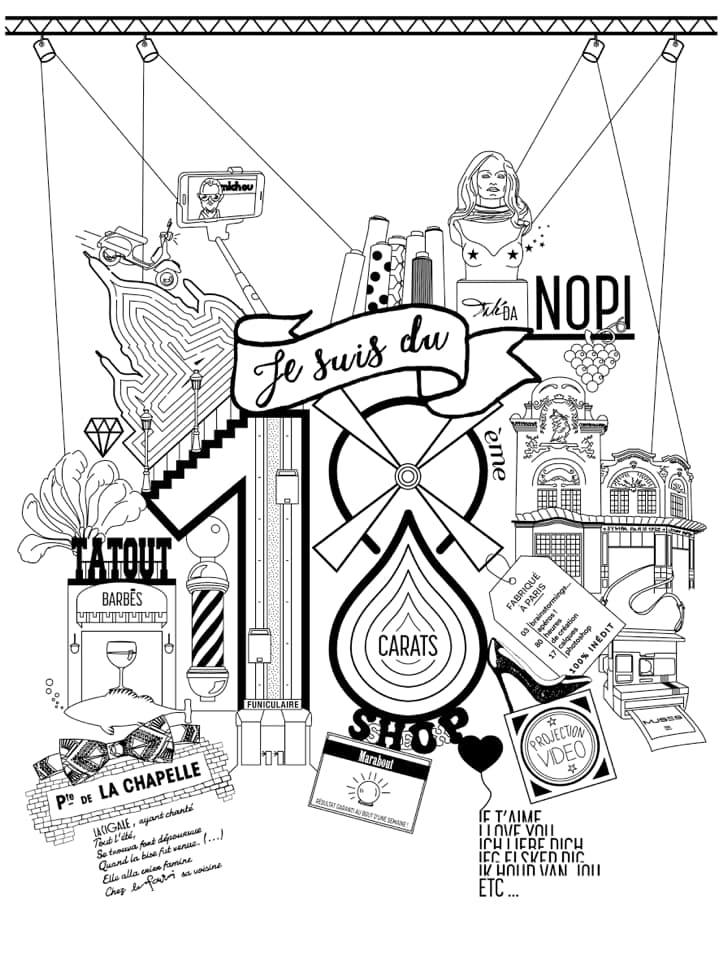 A l’origine, Diane, Kristel et Tiphaine, nos trois drôles de dames, avaient leurs bureaux rue d’Hauteville dans le 10e. Parce qu’elles l’appréciaient vraiment et qu’elles y avaient leurs habitudes, elles ont eu l’idée de créer une première affiche sur ce quartier. Sauf que le 10e, c’est sympa, mais le 18e, ça l’est au moins tout autant, dixit Diane et Tiphaine, toutes deux montmartroises depuis plusieurs années. Il n’en fallait pas plus pour les convaincre de s’attaquer à leur arrondissement adoré.