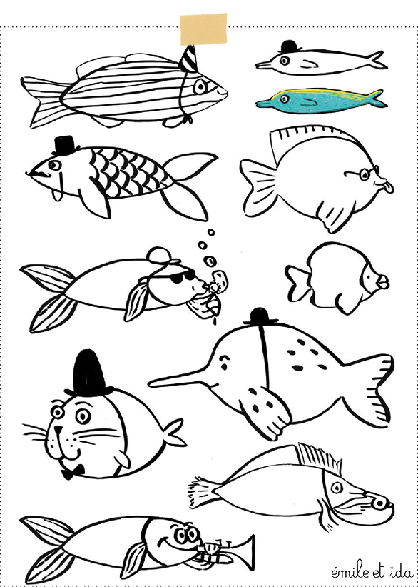 Ce n’est pas parce qu’on ne peut pas sortir qu’il ne faut pas rire et faire des blagues ! Alors aujourd’hui, on colle des poissons sur les fenêtres, au plafond, sur le dos du chat ou même dans le cahier de maths ! Pour vous aider, une planche de poissons à découper, à colorier, à customiser et à coller partout…