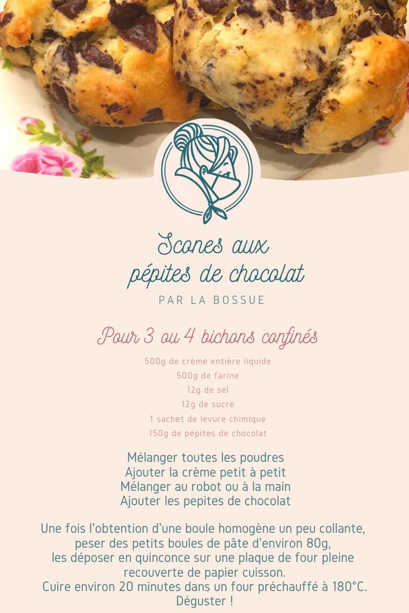 Avec les incontournables et sublimissimes scones aux pépites chocolat de La Bossue
