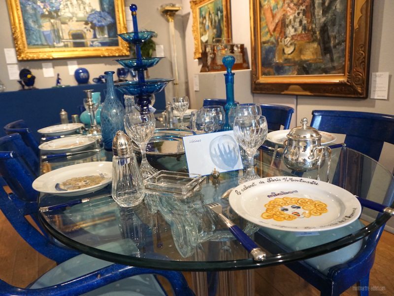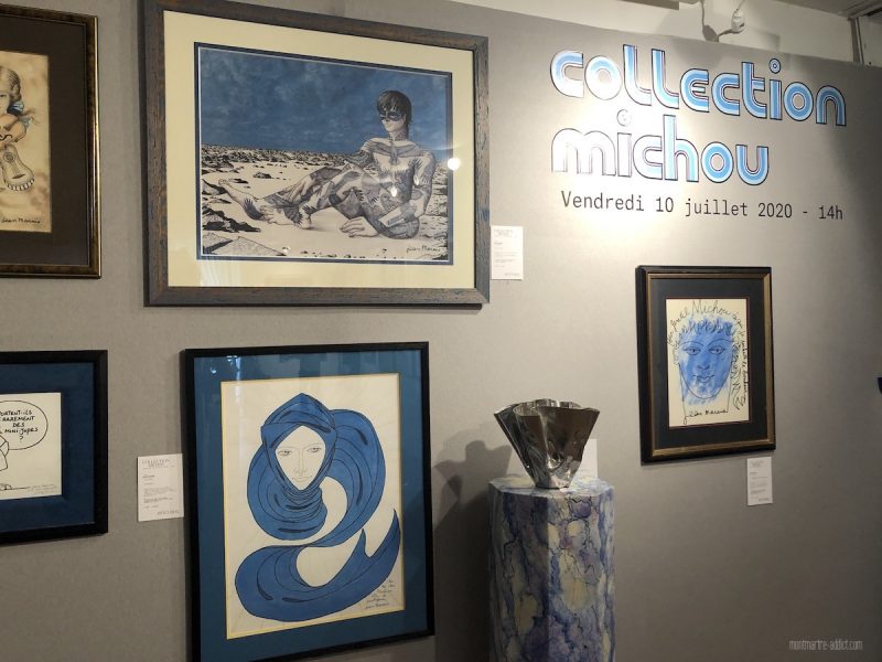 Pour l’occasion, l’univers de Michou a été entièrement reconstitué au sein de l’Hôtel Marcel Dassault à Paris. Niché au sommet d’un immeuble tout proche du cabaret, l’appartement montmartrois, qui offrait une vue imprenable sur Paris et le Sacré Cœur, était à l’image de son propriétaire. Toute sa vie durant, Michou a ainsi accumulé une collection impressionnante d’œuvres modernes, sculptures néoclassiques, mobilier et objets d’art à dominante bleue.