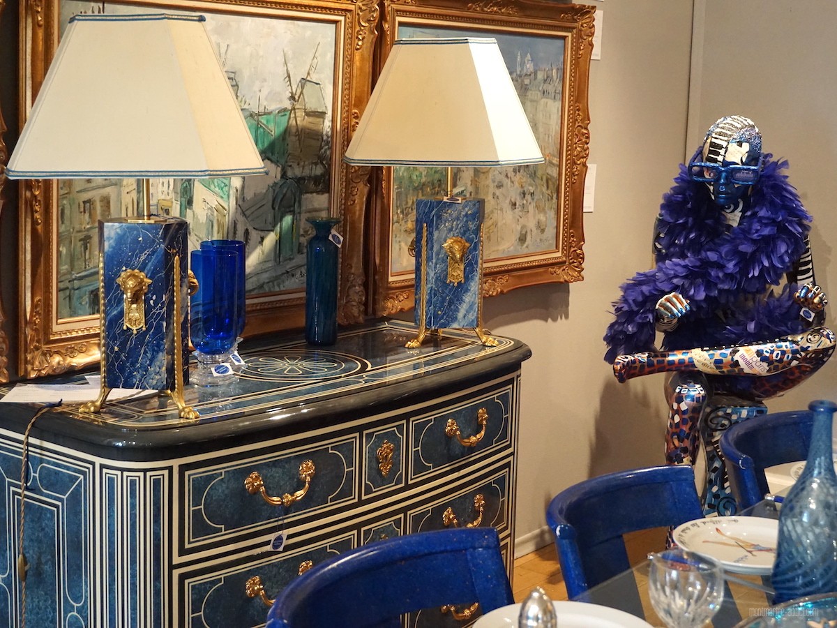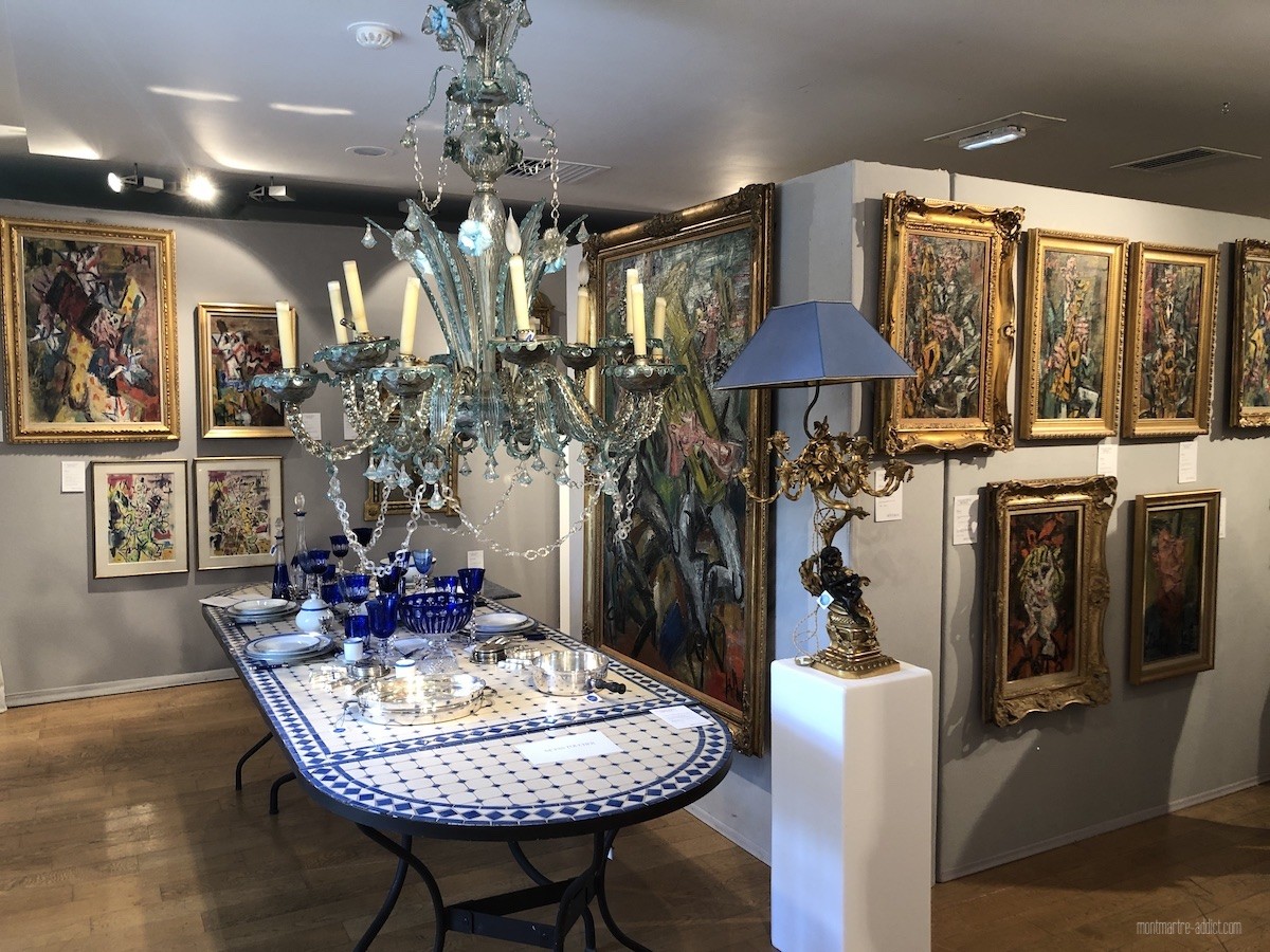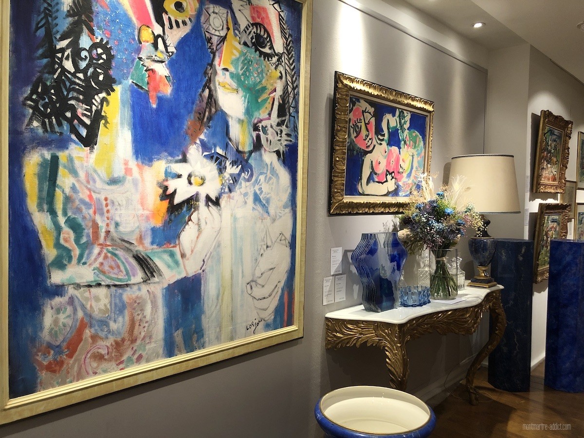 Pour l’occasion, l’univers de Michou a été entièrement reconstitué au sein de l’Hôtel Marcel Dassault à Paris. Niché au sommet d’un immeuble tout proche du cabaret, l’appartement montmartrois, qui offrait une vue imprenable sur Paris et le Sacré Cœur, était à l’image de son propriétaire. Toute sa vie durant, Michou a ainsi accumulé une collection impressionnante d’œuvres modernes, sculptures néoclassiques, mobilier et objets d’art à dominante bleue.