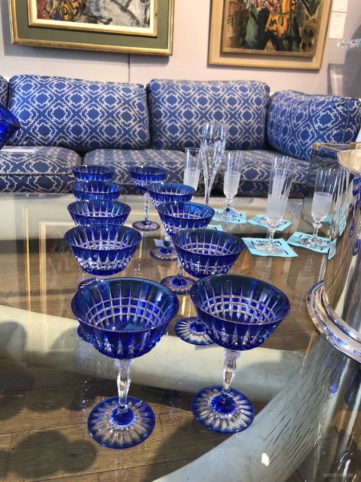 On retrouve également un mélange de mobilier, de sculptures, de lustres et d’objets uniques, ainsi que de magnifiques services de verres en cristal, d’assiettes en porcelaine, ainsi que nombre d’objets signés des plus grands maîtres verriers.