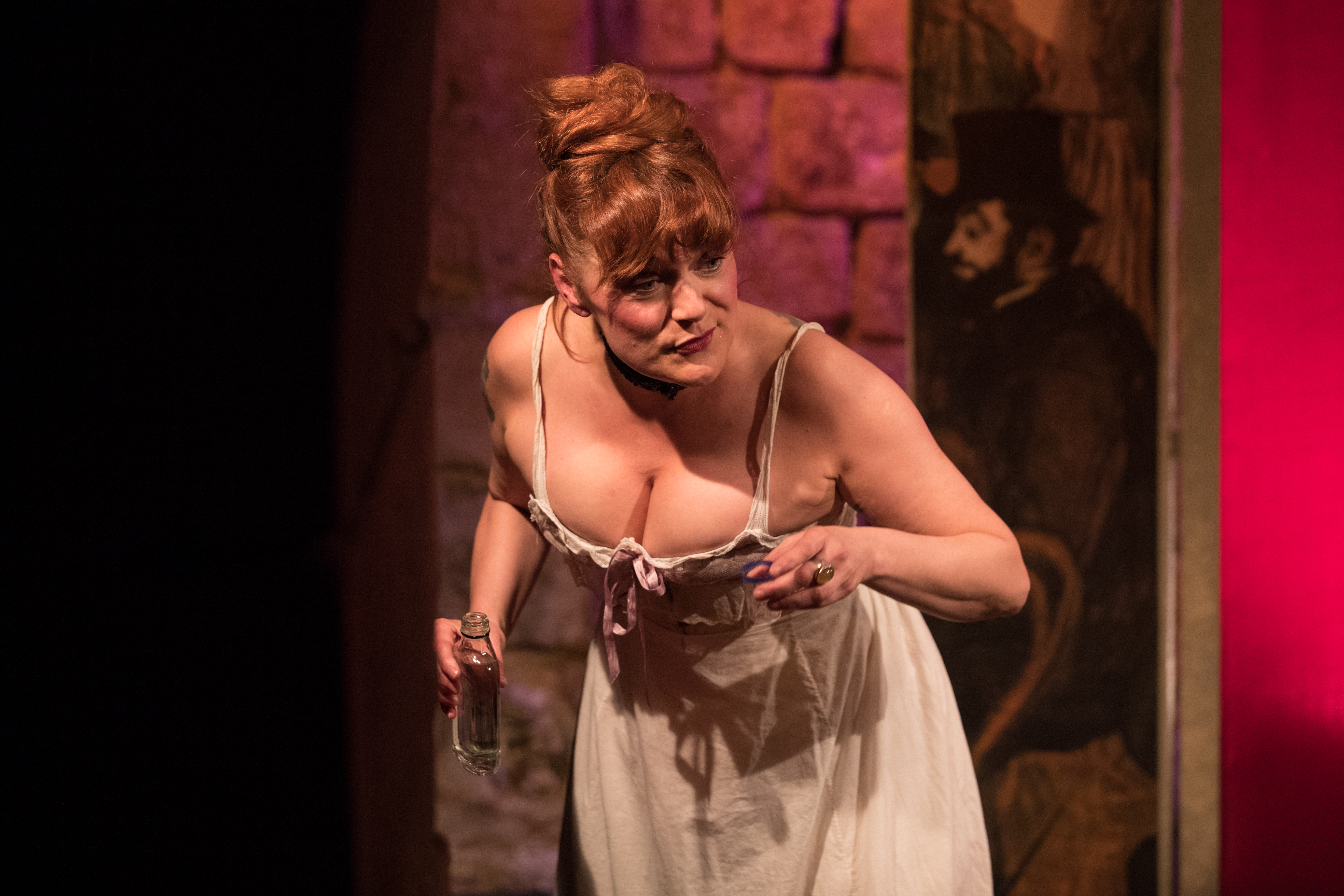 C’est cette Goulue que l’on retrouve au début du spectacle interprété par Delphine Grandsart ; une femme seule, lourde, épuisée par la vie, rongée par la misère. Durant une heure, la comédienne (prix de la meilleure interprète féminine aux Trophées de la Comédie Musicale 2018) incarne une Louise Weber plus vraie que nature, aussi libre et moderne qu’effrontée. La performance est époustouflante, et Delphine Grandsart, accompagnée à l’accordéon par Matthieu Michard, embarque avec elle un public tantôt charmé, tantôt amusé, tantôt choqué, passant du rire aux larmes, mais jamais indifférent, tant et si bien qu’on a envie de dire que c’est un spectacle « qui en a ». Quelle prouesse et surtout quelle intelligence de la part de l’auteure, Delphine Gustau, que de nous faire remonter le temps pour rencontrer à la fin du spectacle Louise Weber enfant.