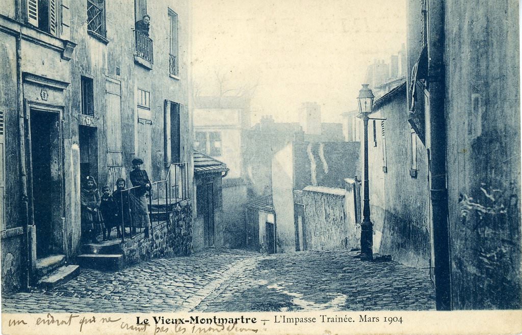 Ces clichés représentent un formidable témoignage de ce qu’était la vie quotidienne sur la Butte au tout début du siècle, mettant en scène les habitants du quartier : « Je me suis, en outre appliqué à donner à mes vues encore plus d’intérêt et à les compléter en les animant par des personnages en harmonie, bien entendu, avec le sujet. Parmi ces personnages, il en est plusieurs qui ont, de préférence, attiré mon attention ; je citerai, en première ligne, la Montmartroise : celle-ci n’a-t-elle pas ce je ne sais quoi, qui la rend différente de la Parisienne autant que de la Provinciale ? J’ai pensé qu’en la représentant à tous les âges de la vie et à tous les degrés de l’échelle sociale, depuis la gamine en jupe courte jusqu’à la vieille mendiante en haillons, c’était conserver d’elle ce que j’appelle un document vivant (…). Après la Montmartroise, j’ai remarqué sur la butte tout un petit monde qui constitue, lui aussi, des documents vivants dignes d’être conservés : ce sont les marchands ambulants, marchands de salade, et de mouron, dont les cris ont inspiré un jeune musicien déjà célèbre, puis les porteurs d’eau avec leurs seaux disposés en balances sur les épaules, enfin les rapins chevelus, drapés en hiver dans leur longue pèlerine, légendaire, et peignant assis, les pieds dans la neige, devant un chevalet rustique ».