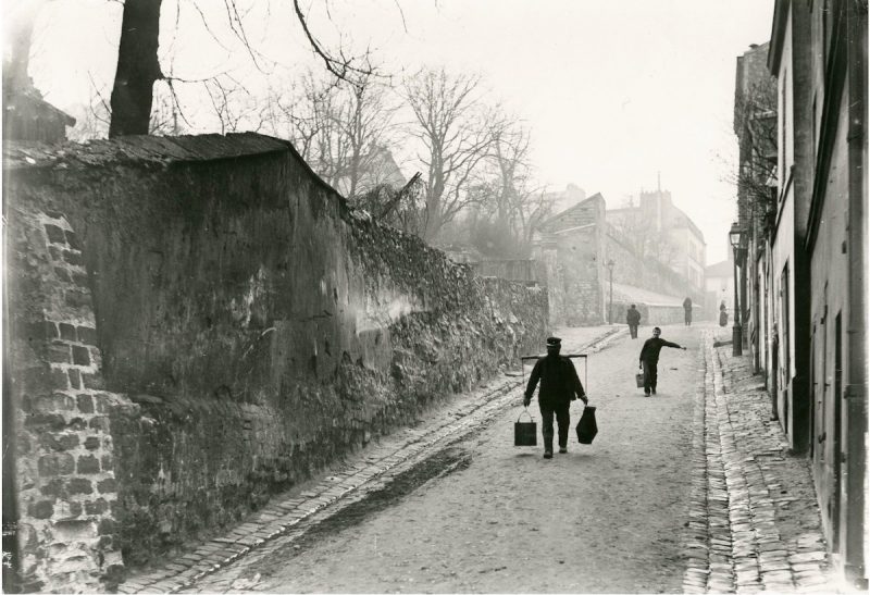 Au tournant du XXe siècle, ce sont les frères Séeberger, alors illustrateurs sur étoffe, qui réalisent leurs premiers clichés sur la Butte. Datée de 1898, le porteur d’eau de la rue des Saules est la plus ancienne photographie signée de Jules Séeberger.