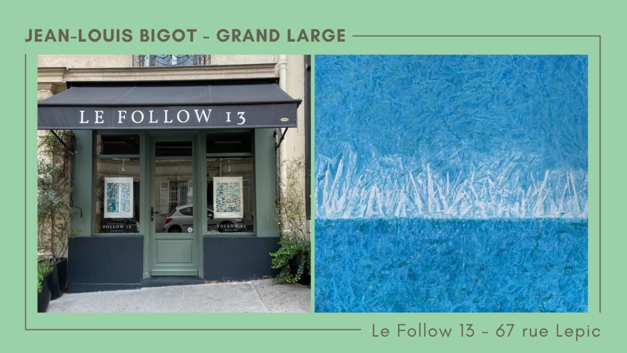 Partir en mer, par-dessus bord les vagues, l’écume, le bleu profond de l’eau. Jean Louis BIGOT vous chavire avec ses DANSE AVEC LES BLEUS, REGATE et BRISE CAILLOUX. Comme la mer avec ses marins, la toile de l’artiste va être tourmentée, secouée, froissée avant d’être submergée de bleu peinture ; jusqu’au calme revenu qui délie sous les yeux de l’artiste une toile tendue comme la voile du bateau ayant vaincu la tempête.