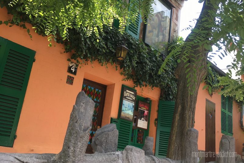 A l’angle de la rue des Saules et de la rue Saint-Vincent, le Lapin Agile fait dignement perdurer la tradition. Ouvert en 1860, l’établissement, d’abord connu sous le nom de Rendez-Vous des Voleurs puis de Cabaret des Assassins, deviendra le Lapin à Gill (ou Lapin Agile) en référence à son enseigne représentant un lapin sortant d’une casserole et dessinée par le caricaturiste André Gill. L’histoire du lieu est foisonnante et fera l’objet d’un article complet. Notons cependant que, racheté en 1913 par Aristide Bruant, il fut l’un des hauts lieux du Montmartre Bohème du début du XXe siècle, puis deviendra après la seconde guerre mondiale un tremplin pour de nombreux chanteurs, Claude Nougaro, entre autre, y ayant fait ses débuts. Le Lapin Agile s’enorgueillit aujourd’hui d’être un conservatoire vivant de la chanson française, en proposant tous les jours un spectacle en continu à partir de 21h où le public est invité à participer de manière conviviale.