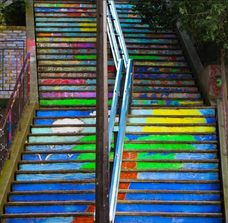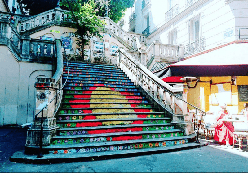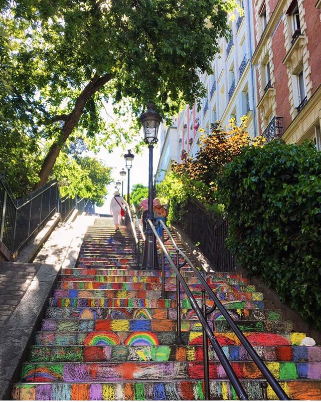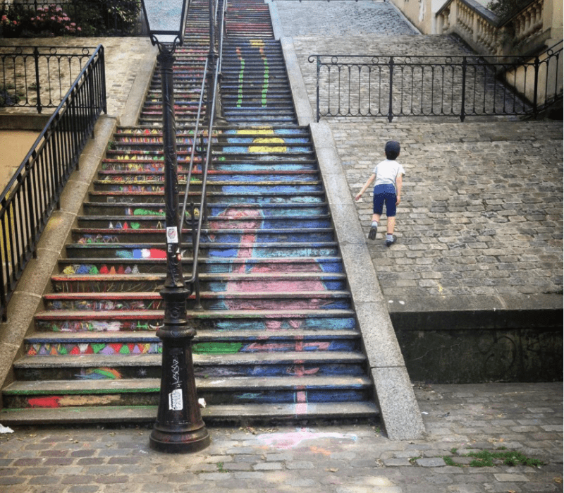 A Montmartre, les escaliers font partie de notre quotidien ; on les aime comme on les redoute parfois, surtout dans le sens de la montée… Depuis quelques jours, nos escaliers se sont en plus parés de mille et une couleurs. En effet, mercredi dernier, plus de 500 enfants des centres de loisirs de Montmartre et du 18e ont décoré les marches à la craie, créant ainsi de véritables fresques enchanteresses. Durant tout le week-end, les touristes comme les montmartrois ont immortalisé ces créations éphémères sur Instagram. Découvrons ensemble une sélection des plus beaux clichés postés sur les réseaux sociaux…