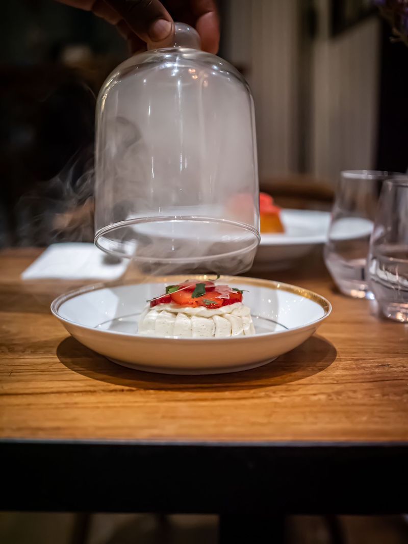 Kyung Duk Kim est elle de nationalité coréenne. Si ses origines ont aussi une influence sur la cuisine de son mari, elle est pour sa part la spécialiste du sucré, et ses desserts sont tout aussi exceptionnels. Comment ne pas être bluffé par cet incroyable pâtisserie fumée sous cloche ?