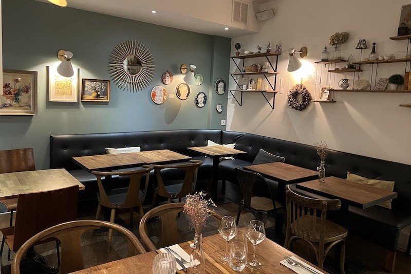 Mais l’expérience ne s’arrête pas à l’assiette. En salle, Blandine et Frédéric sont aux petits soins, décrivant la carte avec passion, rivalisant de petites attentions ; le genre de service auxquels les parisiens ne sont malheureusement plus trop habitués, et ça fait du bien ! Il faut dire que ce restaurant, c’est leur bébé, et tout a été pensé pour qu’on s’y sente bien. C’est Blandine qui, en femme de goût et fan de déco scandinave, a pensé le lieu avec des matières nobles et des tons neutres propices au cocooning, le tout réhaussé par l’authenticité du grand comptoir en zinc. La terrasse éphémère en été permet quant à elle de profiter de la vue sur la rue Cyrano de Bergerac et ses jolis immeubles.