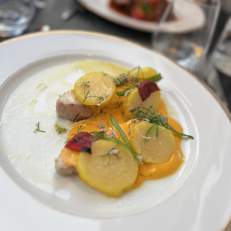 En plus de la carte, qui change toutes les semaines, un menu dégustation en cinq temps (deux entrées, deux plats et un dessert) à 60€ permet de découvrir la cuisine du couple de chefs, tous deux passés par les cuisines de maisons aussi prestigieuses que le Bristol ou le Mudec à Milan. Le week-end, le brunch à 28€ préparé à la minute est tout aussi gourmet et gourmand, et est d’ailleurs considéré comme l’un des meilleurs du quartier.