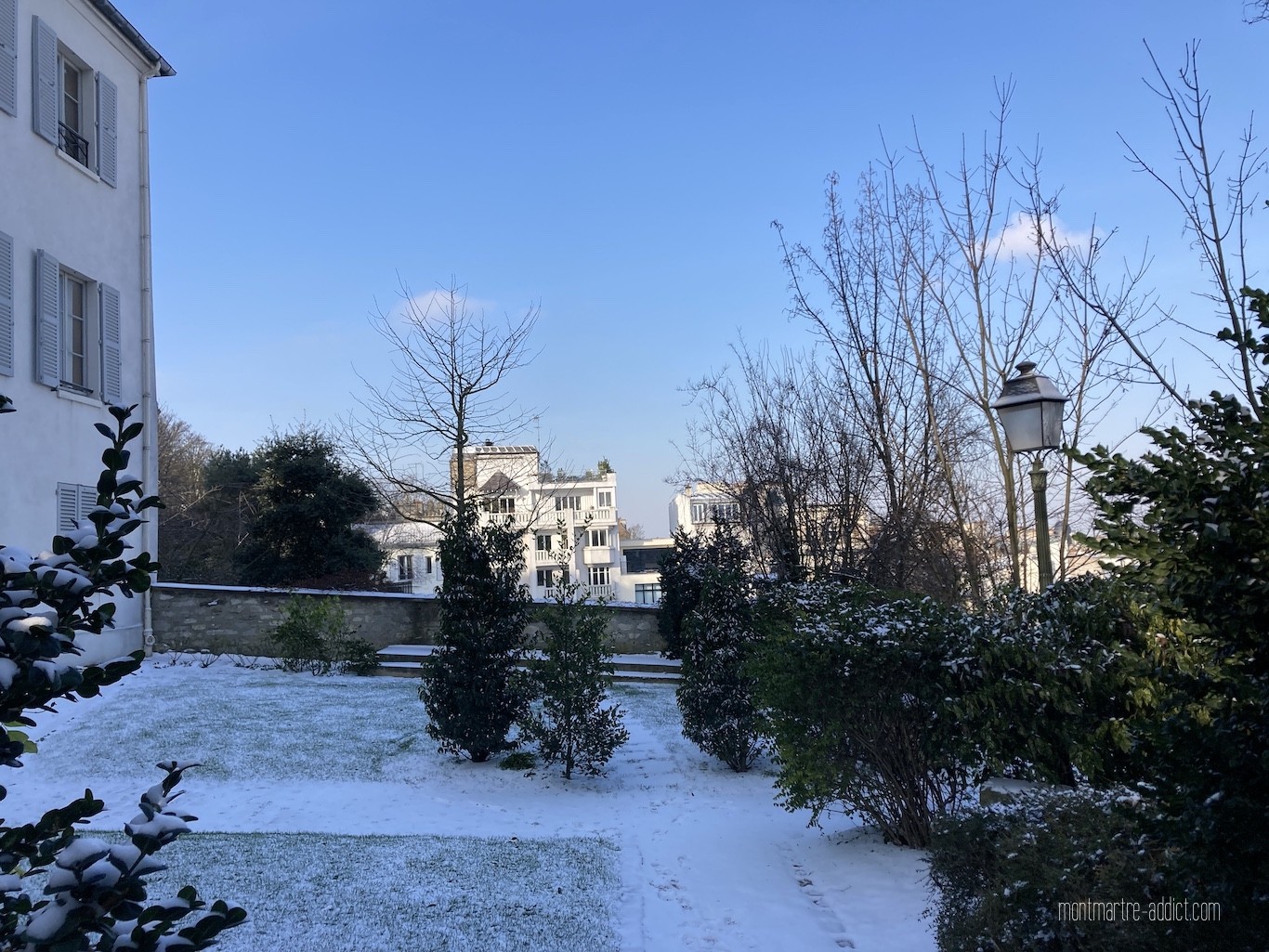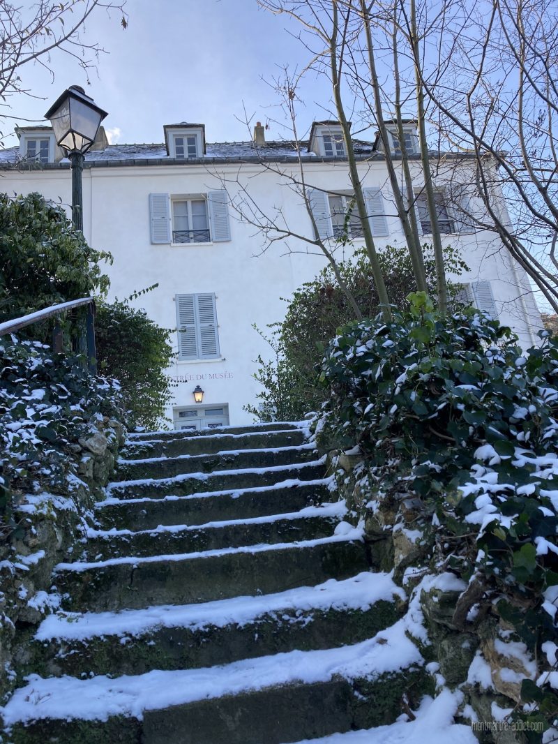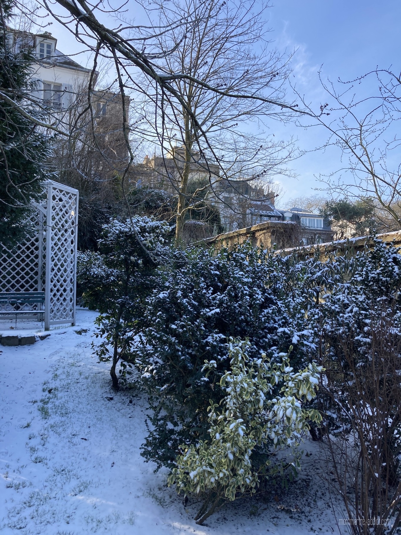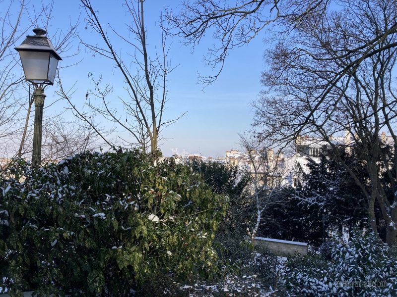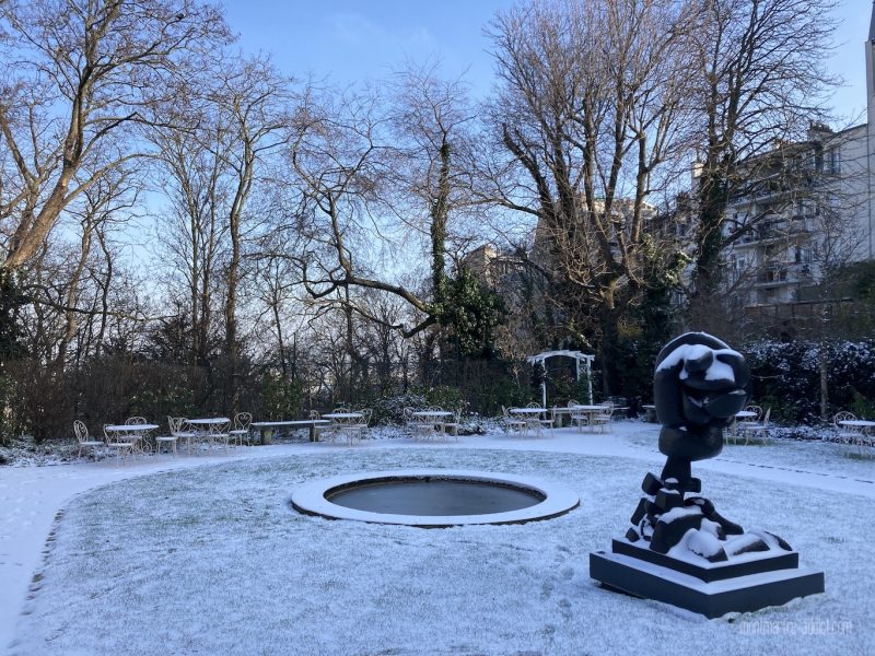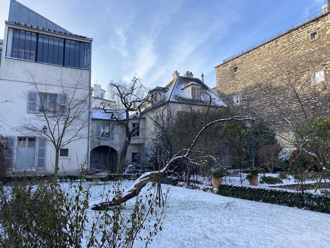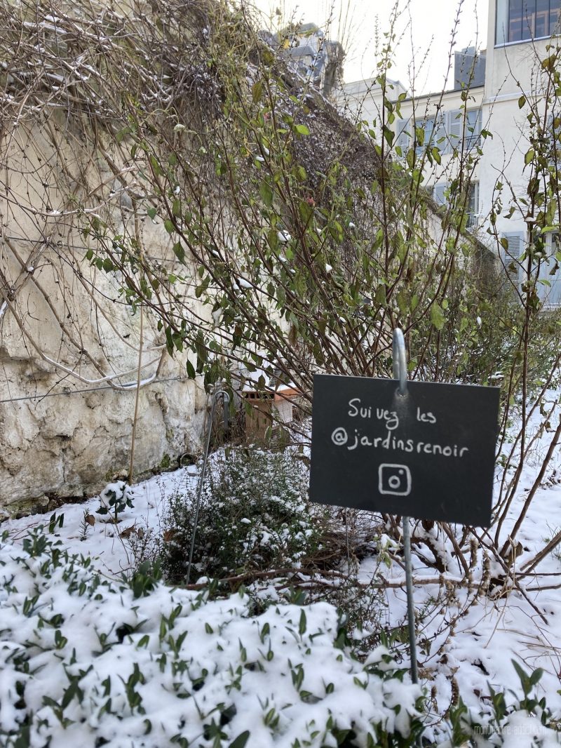 On l’attendait avec impatience, et après une première visite il y a quelques semaines, la neige est enfin tombée sur Montmartre… Malgré le froid polaire qui l’accompagnait, nous n’avons pu décliner l’invitation à aller tôt ce matin dans les jardins Renoir du Musée de Montmartre ; parce que le musée nous manque trop, parce que les jardins Renoir sont magnifiques en toute saison, et parce qu’ils l’étaient encore plus ce matin, comme si une bonne fée les avait recouverts de poudre magique pendant la nuit…