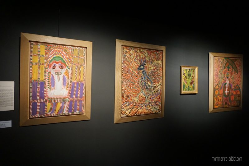 Comme souvent à la Halle Saint Pierre, l’exposition est très riche, à la fois impressionnante mais aussi parfois déroutante. Oui, on l’avoue, nous nous sommes posés beaucoup de questions devant La Chambre 23 (technique mixte) de Francis Marshall, ou encore devant les tableaux de Josée Francesco Abello Vives…
