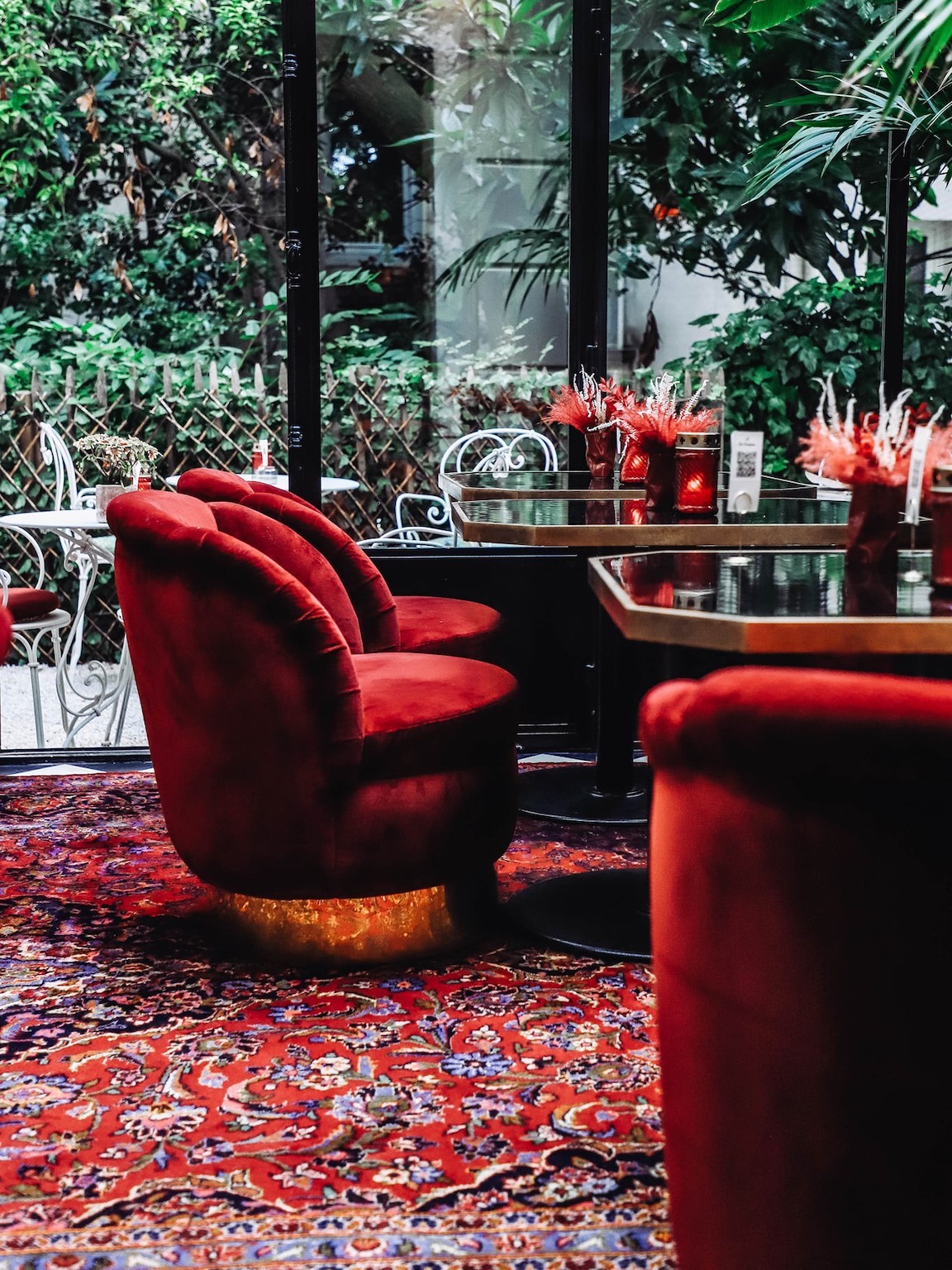 Tous les meubles ont été chinés avec goût et invitent au voyage, depuis l’univers feutré d’un boudoir d’Asie et les matières nobles des fumeries d’opium, les salons cossus des belles maisons d’antan, le refuge sulfureux d’une suite toute de léopard et de miroirs vêtue, le jardin d’hiver ou encore la suite sous verrière du dernier étage. Tout est d’une élégance extrême, donnant encore plus de caractère à cette fabuleuse maison de famille.