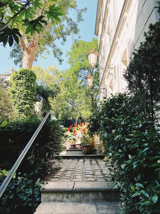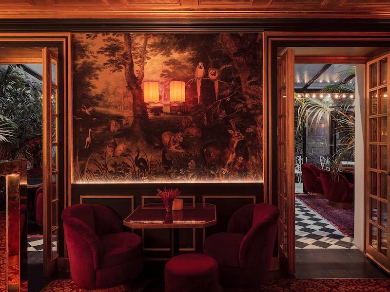 Tout commence en 1871, année de construction de cette belle demeure de style Directoire nichée au cœur d’un écrin de verdure typiquement montmartrois. La maison a d’abord appartenu à la famille Hermès, puis aux Rothschild, avant d’être rachetée en 2007 par monsieur et madame Comtet. Le couple transforme le lieu en maison d’hôtes haut de gamme, puis choisit finalement de le revendre trois ans plus tard. Mais c’est sans compter sur leur fils, qui décide de reprendre les choses en main. Oscar est un créatif ; paysagiste de formation, il travaille dans le monde de la mode et du cinéma, et saisit immédiatement le formidable potentiel de la maison. Il monte d’abord un bar, où il propose entre autre des cocktails à base de fleurs oubliées. L’opération est un succès, et son père lui confie alors la direction de l’établissement ; à lui de le faire prospérer.