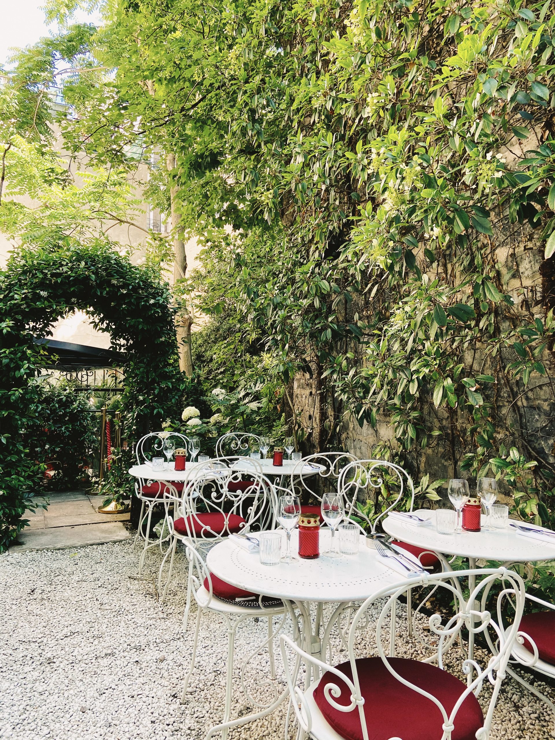 D’ailleurs, parlons-en des jardins, qui font partie intégrante de l’expérience de l’Hôtel. Comment ne pas tomber sous le charme de ces 900m2 de verdure dessinés par Louis Benech, le paysagiste du Jardin des Tuileries ? Des jardins dont s’occupe souvent Oscar Comtet lui même, n’oubliant pas sa formation initiale. D’ailleurs, il ne se définit lui-même ni comme un hôtelier (l’établissement n’est ainsi pas classé, par choix), ni comme un restaurateur. Ce qui lui plaît, c’est d’imaginer et de créer les histoires qui prendront vie à l’Hôtel Particulier. On ne demande qu’à en faire partie…